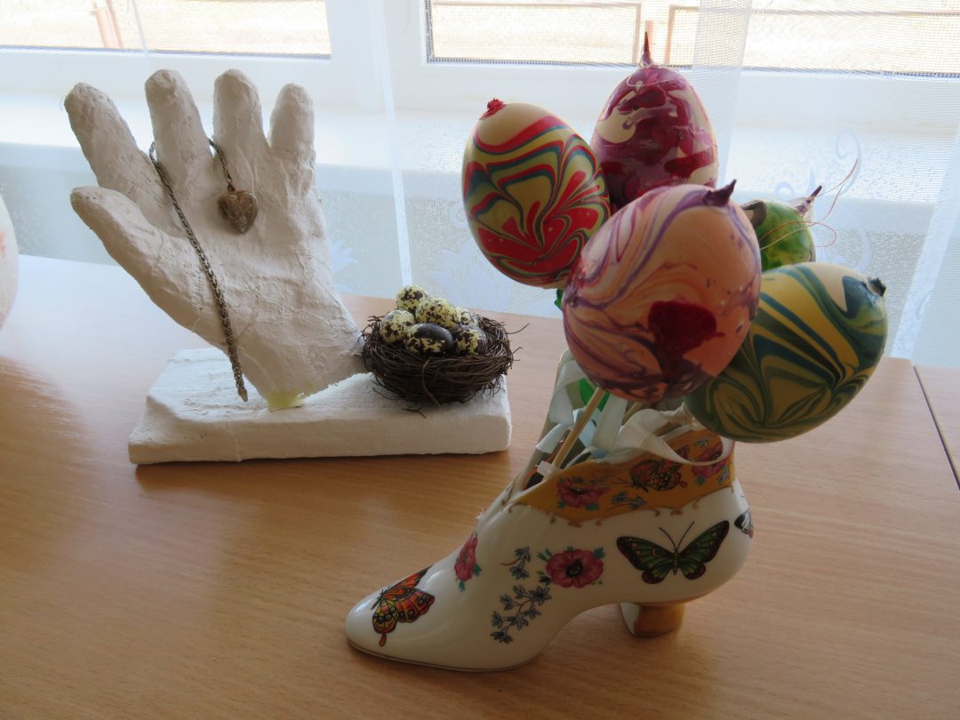 Kūrybinių idėjų nestokojančios moterys eksponuoja velykine tematika sukurtus darbelius. Kvilingo technika kurtų margučių paroda veikia Pandėlio miesto bibliotekoje, joje – rokiškėnės Rimantės Gudžiūnienės darbai. Bajorų kaimo bibliotekoje demonstruojami Kristinos Sadauskienės nerti velykiniai darbeliai, Germos Milaknienės kryželiu siuvinėtas paveikslas ir Aleksandravėlės bibliotekos klubo „Darbščiosios rankelės“ velykinių darbelių paroda.