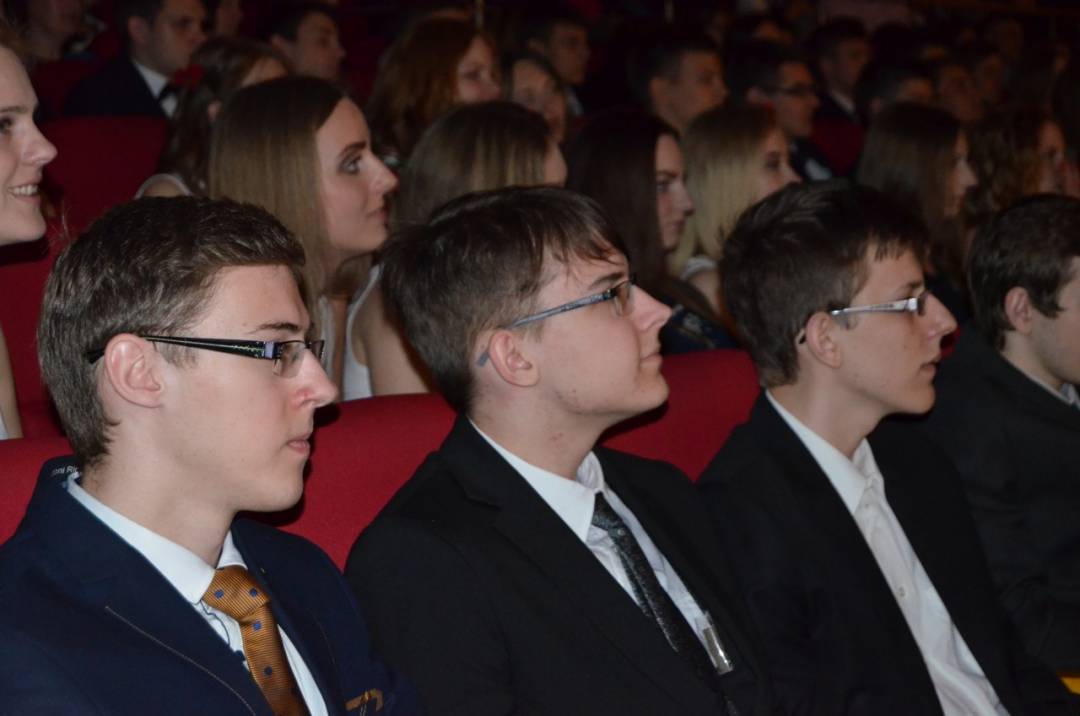 Gimnazijos direktorius Gediminas Matiekus sveikinimo kalboje abiturientus mokė, kaip per artėjantį svarbiausią – lietuvių kalbos egzaminą išsivaduoti nuo streso. „Jums reikia parašyti rašinį iš 500 žodžių. Tiek žodžių jūs galite perskaityti per 2 minutes. Taigi dar turite 9 dienas iki egzamino. Per tiek laiko galima perskaityti daugiau nei milijoną žodžių“, – šmaikštavo gimnazijos vadovas, linkėjęs visiems sėkmės.