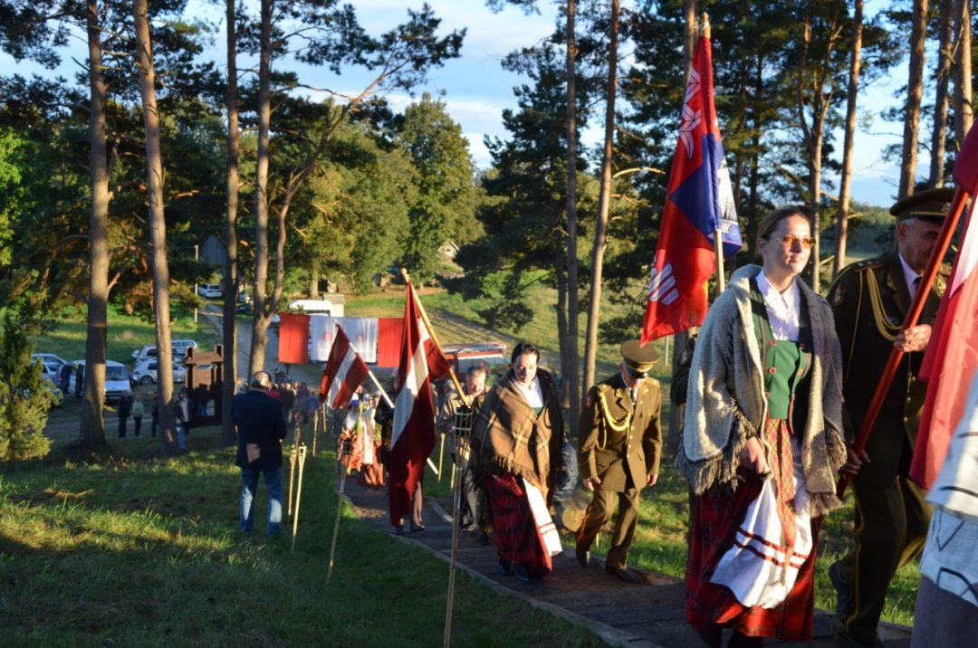 Šventė prasidėjo vėliavų paradu: į pilkalnį, apšviestą liepsnojančių fakelų, kopė Rokiškio, Lietuvos, Latvijos bei gimtadienį švenčiančio Rokiškio ir į svečius atvykusių bendruomenių vėliavomis nešini šventės dalyviai. Istorinė misterija padiktavo ir aprangos kodą – vieni pasipuošė tautiniais kostiumais, pagonių aprėdais, kiti prisiderino tik tautinius ar senojo baltų tikėjimo akcentus. Minioje išsiskyrė paradine uniforma vilkintys svečiai – Karininkų ramovės kariškiai (“Aido” choro dalyviai) ir, žinoma, vaidilučių įvaizdį sukūrusios šios šventės organizatorės Kavoliškio kaimo bendruomenės ir kaimiškosios seniūnijos vadovės Danutė Kirstukienė, Dalia Janulienė bei jų talkininkės.