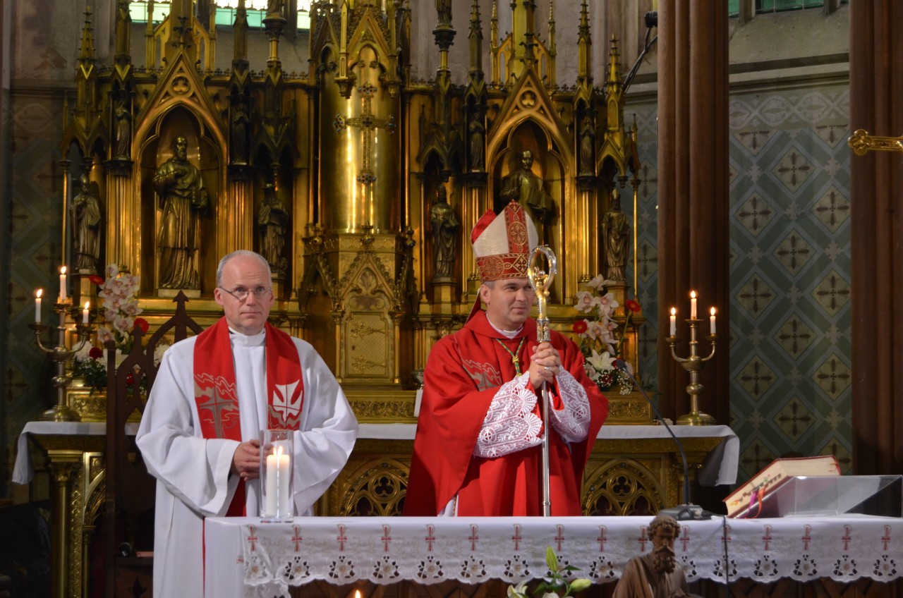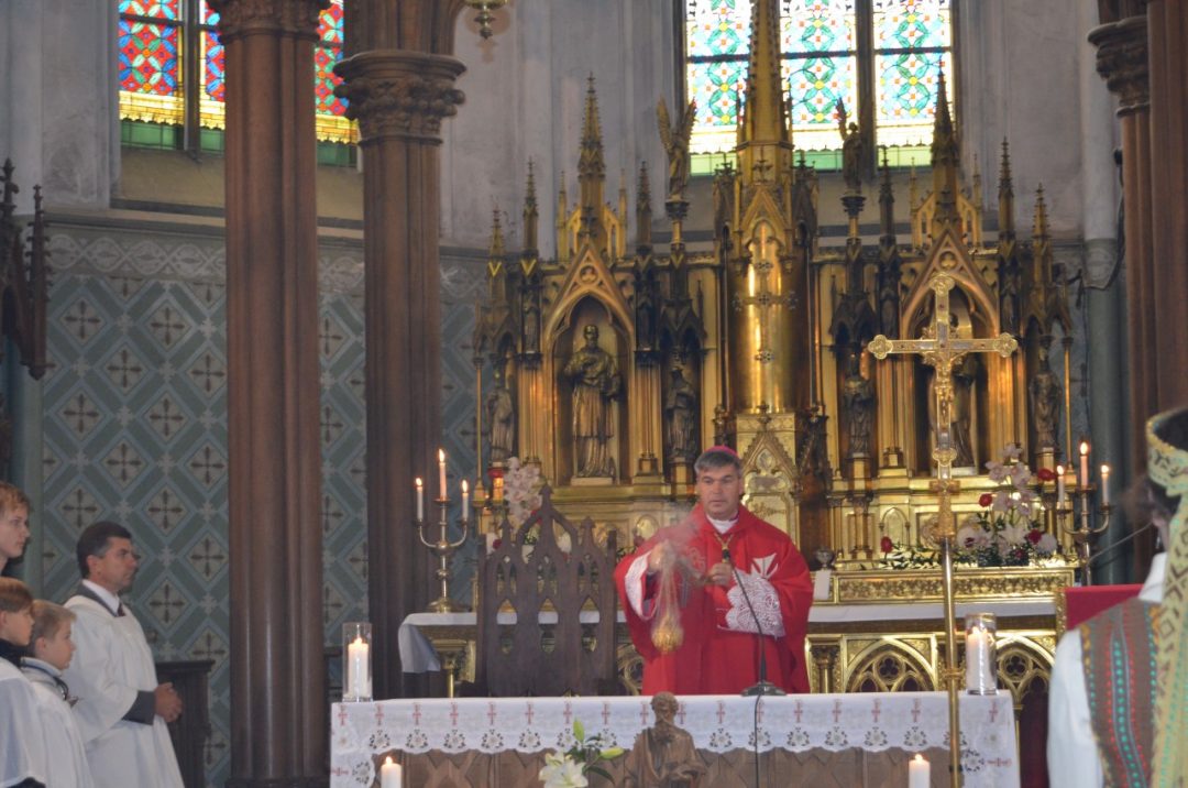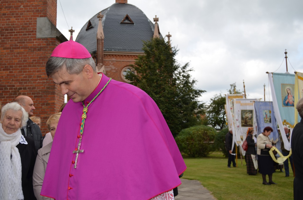 Šv.Mišių metu vyskupas priminė vyskupijos istoriją nuo jos kūrimosi iki šių dienų, kvietė melstis už miestą, parapiją, vyskupiją, karo kankinamos Sirijos tautą, vairuotojus ir kitus eismo dalyvius, nes su atlaidais sutapo saugaus eismo keliuose diena. „Tam, kas važiuoja greičiau nei 200 kilometrų per valandą – tik vienas palinkėjimas.Tiesiai į dangų“, – perfrazavo girdėtą pasakymą apie neatsakingus vairuotojus dvasininkas. Rokiškio dekanas ir parapijos klebonas Eimantas Novikas, dėkodamas tikintiesiems ir atlaidus rengti padėjusiems talkininkams švilpuko garsu pralinksmino susikaupimo rimtį linkėdamas visiems būti saugiems keliuose.