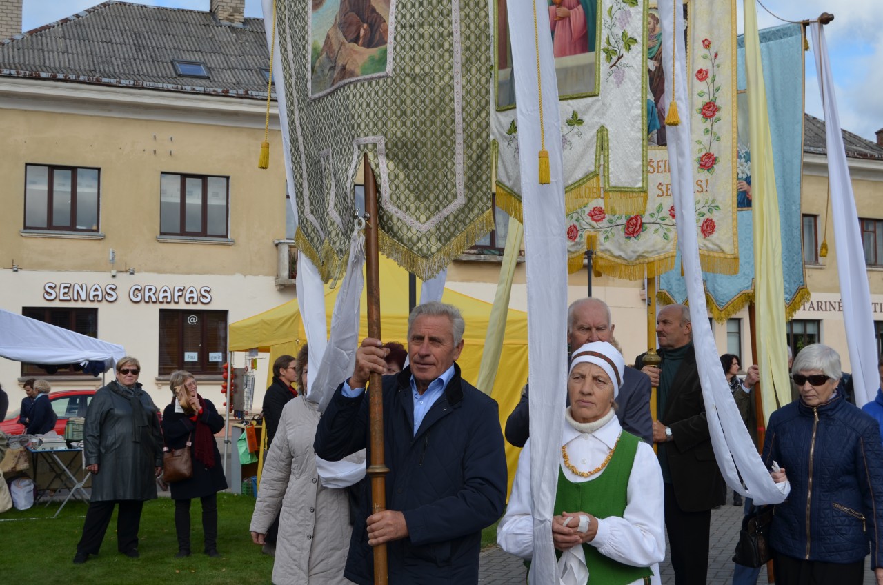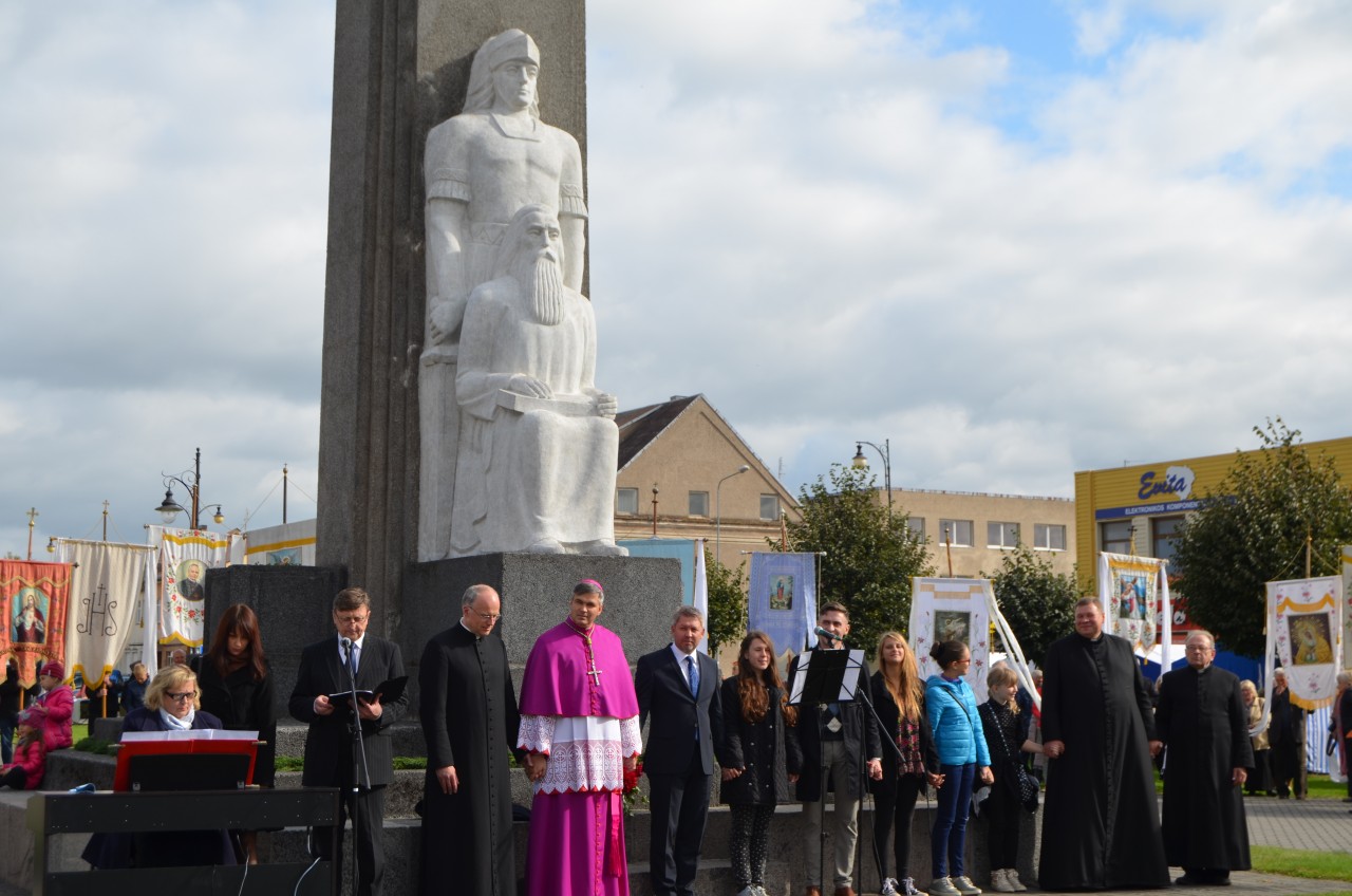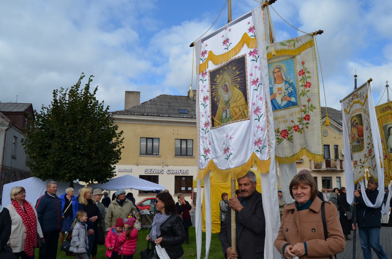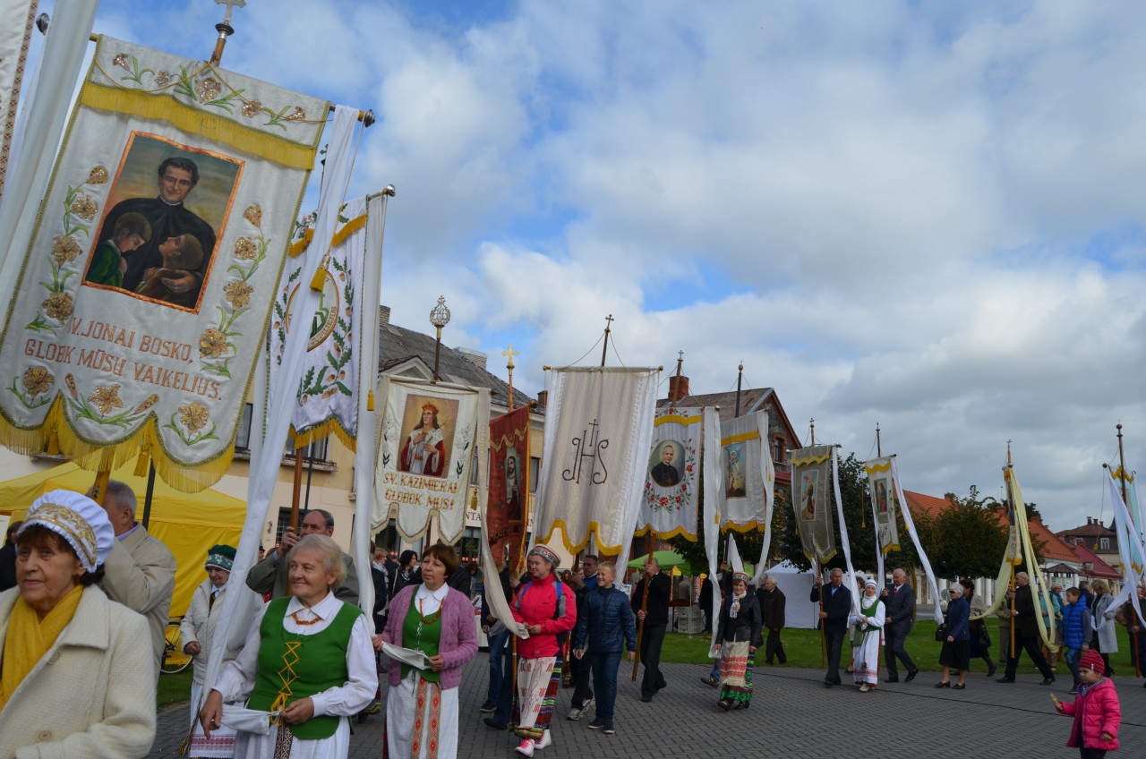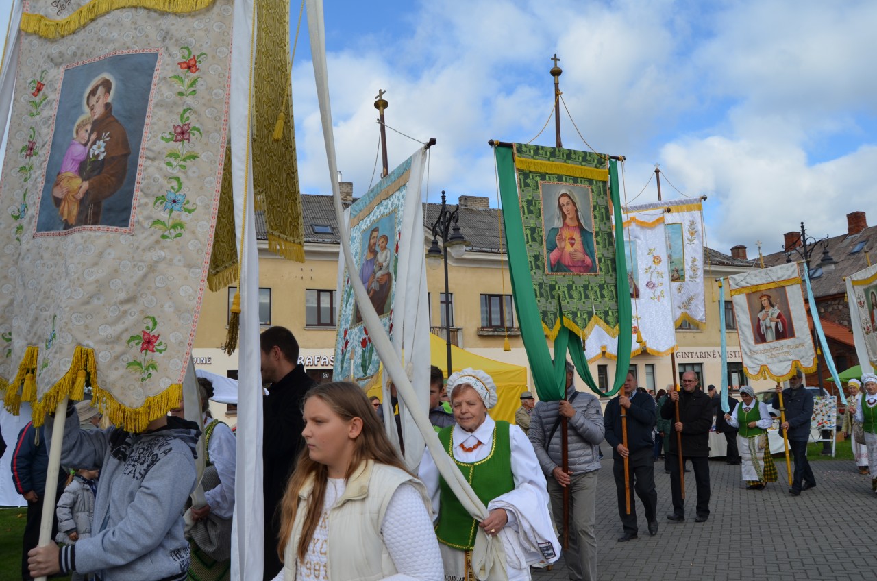 Po maldų iš šventoriaus į aikštę prie Nepriklausomybės paminklo vyko eisena su vyskupijos parapijų bažnytinėmis vėliavomis, skambėjo sveikinimai, giesmės ir prasmingos kalbos. Po