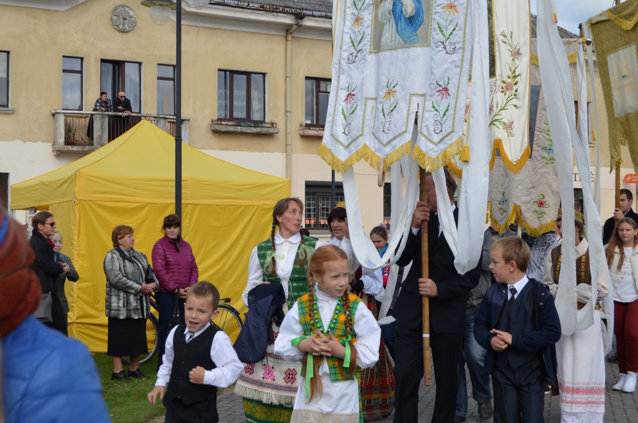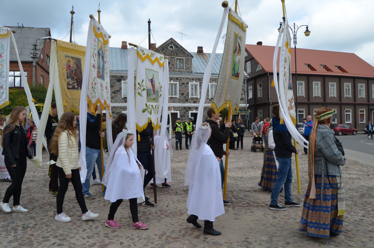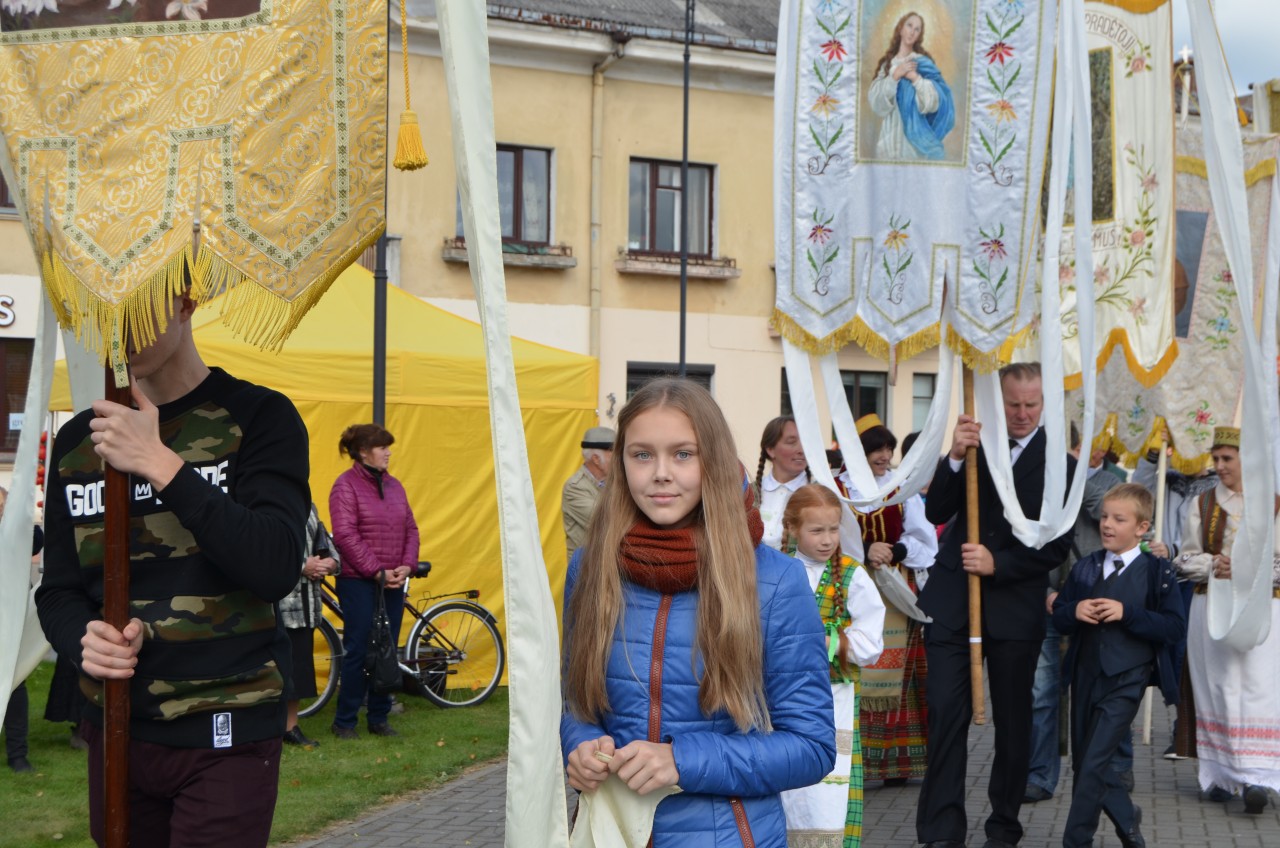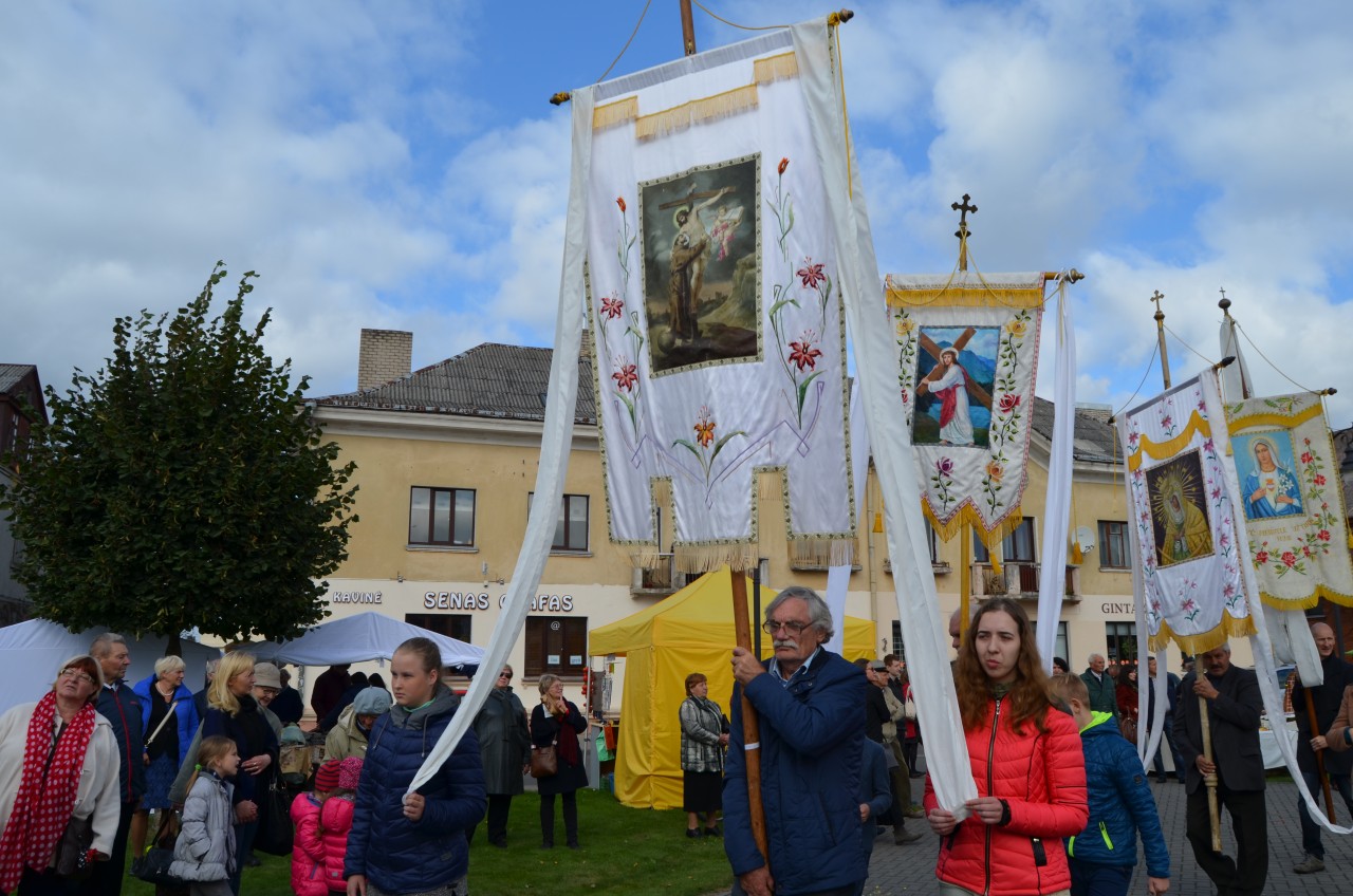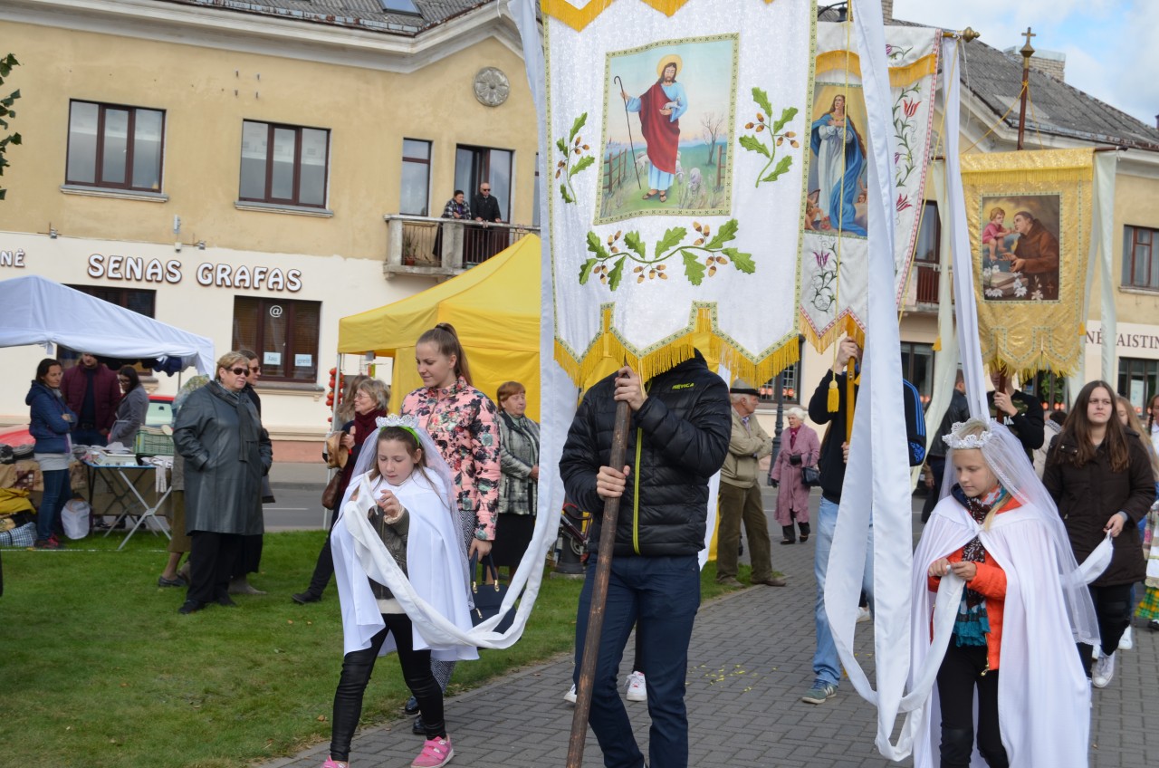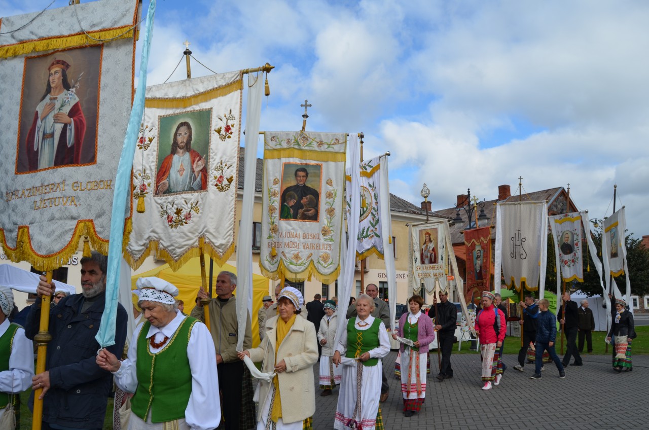 Po maldų iš šventoriaus į aikštę prie Nepriklausomybės paminklo vyko eisena su vyskupijos parapijų bažnytinėmis vėliavomis, skambėjo sveikinimai, giesmės ir prasmingos kalbos. Po