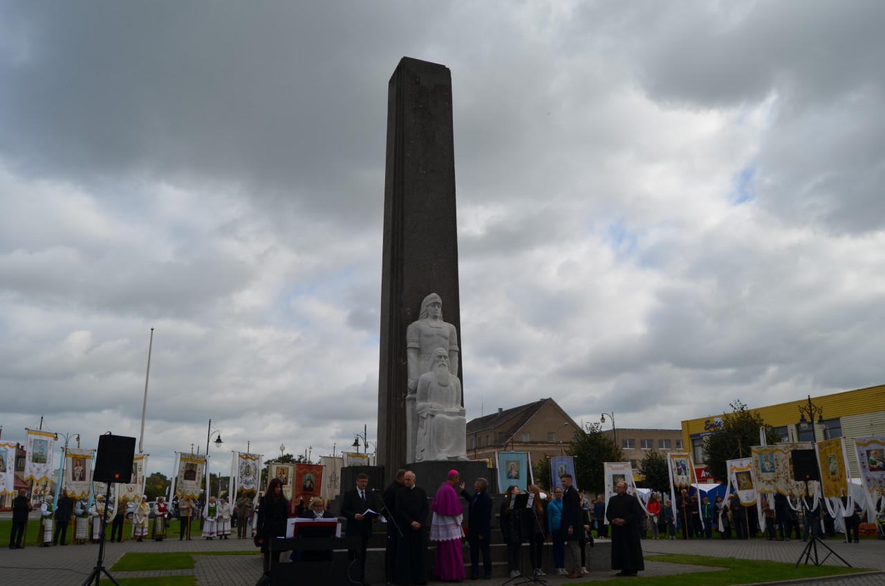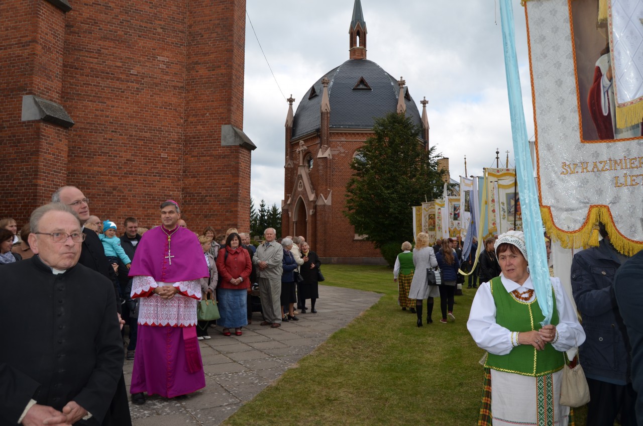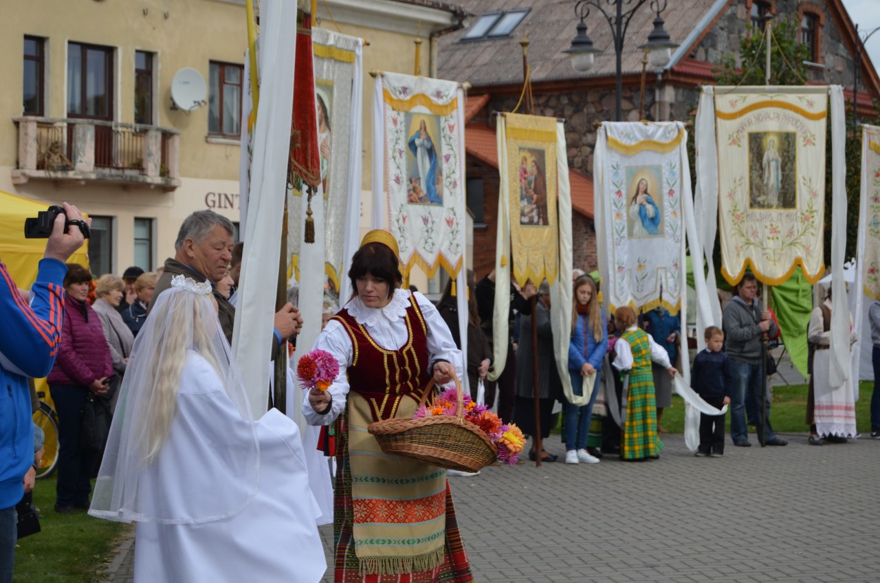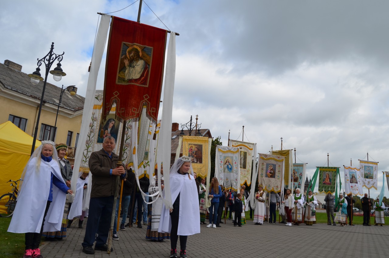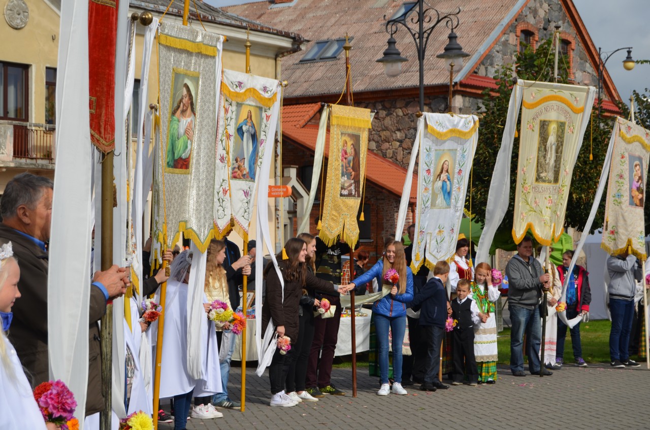 Po maldų iš šventoriaus į aikštę prie Nepriklausomybės paminklo vyko eisena su vyskupijos parapijų bažnytinėmis vėliavomis, skambėjo sveikinimai, giesmės ir prasmingos kalbos. Po