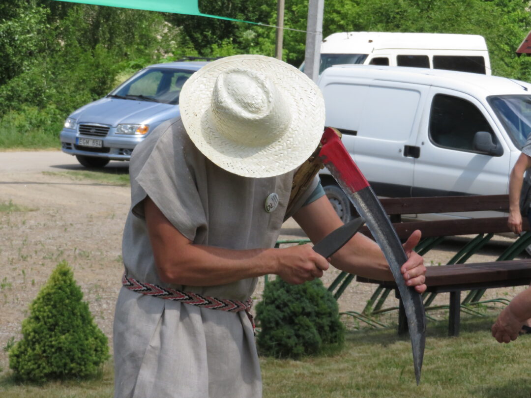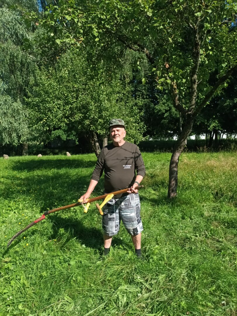 Geležtę išplaka kaimynas. Vieno plakimo užtenka visai vasarai. O pustyti dalgį Arvydą pamokė giminaitis.