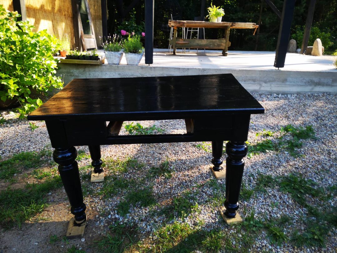Pats brangiausias ir labiausiai naudojamas iš močiutės parsigabentas stalas, kuris stovėdavo lauke, nebenaudojamas – be stalčiaus, jau nupuvusiomis kojomis. Jis buvo prikeltas antram gyvenimui – pridėti kojų galai, naujai padarytas stalčius, perdažytas. Jis sulaukia daug komplimentų, nors nėra nei ąžuolinis, nei kažkoks „mandras“.