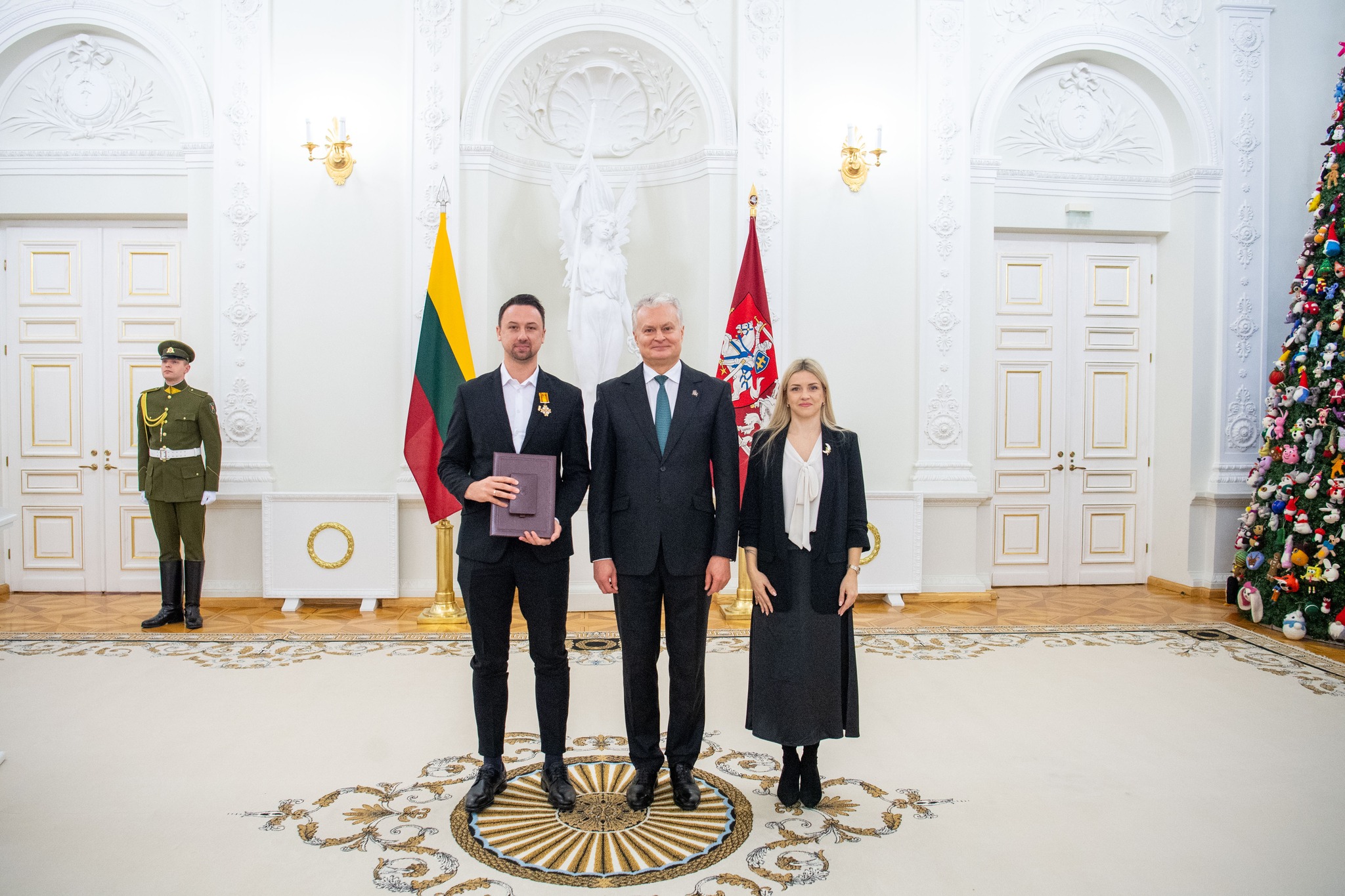 Prezidento dekretu už aukštus sportinius pasiekimus ir Lietuvos vardo garsinimą pasaulyje Lietuvos didžiojo kunigaikščio Gedimino ordino Karininko kryžiumi apdovanoti sidabrą iškovojęs disko metikas Mykolas Alekna, vicečempione tapusi breiko šokėja Dominika Banevič, bronzos medalį iškovojęs paralimpietis, dziudo imtynininkas Osvaldas Bareikis, trečią vietą užėmusi irkluotoja Viktorija Senkutė bei bronzą iškovoję Lietuvos vyrų trijulių krepšinio rinktinės nariai Evaldas Džiaugys, Gintautas Matulis, Aurelijus Pukelis ir Šarūnas Vingelis.