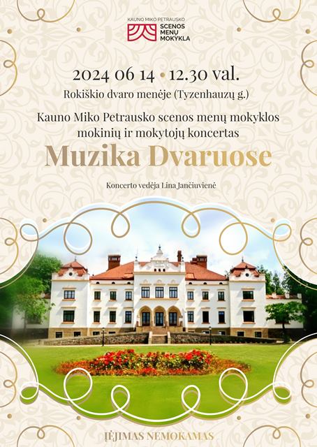 Birželio 14 d. 12.30 val. – Kauno Miko Petrausko scenos menų mokyklos mokinių ir mokytojų koncertas MUZIKA DVARUOSE.