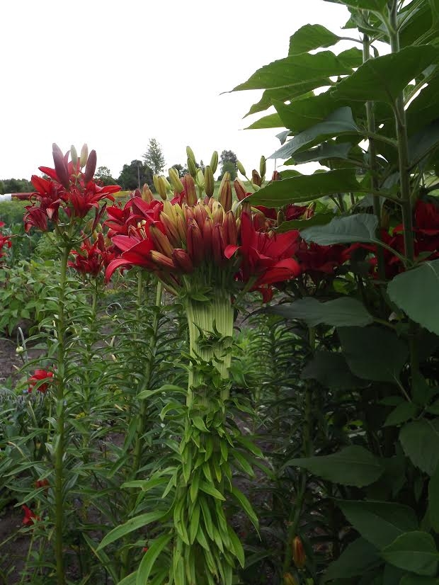 Apie sodo gale išaugusias net dvi neįprastas lelijas „Gimtajam…“ pasakojo J. Kružintaitienės dukra Toma Garolienė: „Sodelyje lelijų auga ne viena, tačiau visos įprastos, normaliais stiebeliais. O dvi išdygo tokios keistos – tarsi vienoje vietoje kažkas būtų sujungęs daugybę stiebelių. Abiejų koteliai – apie 8 cm pločio ir labai dideli žiedynai. Visus sukrautus žiedus buvo sunku suskaičiuoti, nes kekės viduryje buvo gausybė labai smulkių, kurių net nebepasiekėm. Tačiau ir be jų suskaičiavome mažiausiai 70 vnt. Viso žiedyno skersmuo siekė 30 cm. Viena nuo svorio greitai nulūžo, tad papuošė kambarį namuose. Per tą gausybę, visiems žiedams pražysti vienu metu net neužteko vietos. Pamerkta vazoje lelija žydėjo palaipsniui maždaug mėnesį: pirmiausia skleidėsi kraštiniai žiedai, kurie nuvystę nukrisdavo, o tada pražysdavo esantys arčiau vidurio. Tuo tarpu kitos lelijos kotas buvo stipresnis ir žiedų svorį išlaikė, tad augo kieme.“