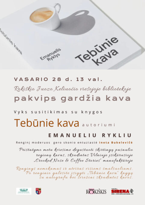 Vasario 28 d. 13 val. Susitikimas su knygos „Tebūnie kava“ autoriumi Emanueliu Rykliu.