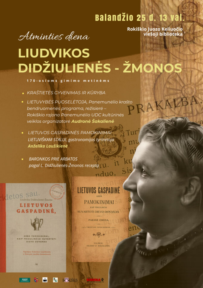 Balandžio 25 d. 13 val. Rokiškio Juozo Keliuočio viešojoje bibliotekoje Atminties diena LIUDVIKOS DIDŽIULIENĖS-ŽMONOS 170-osioms gimimo metinėms.