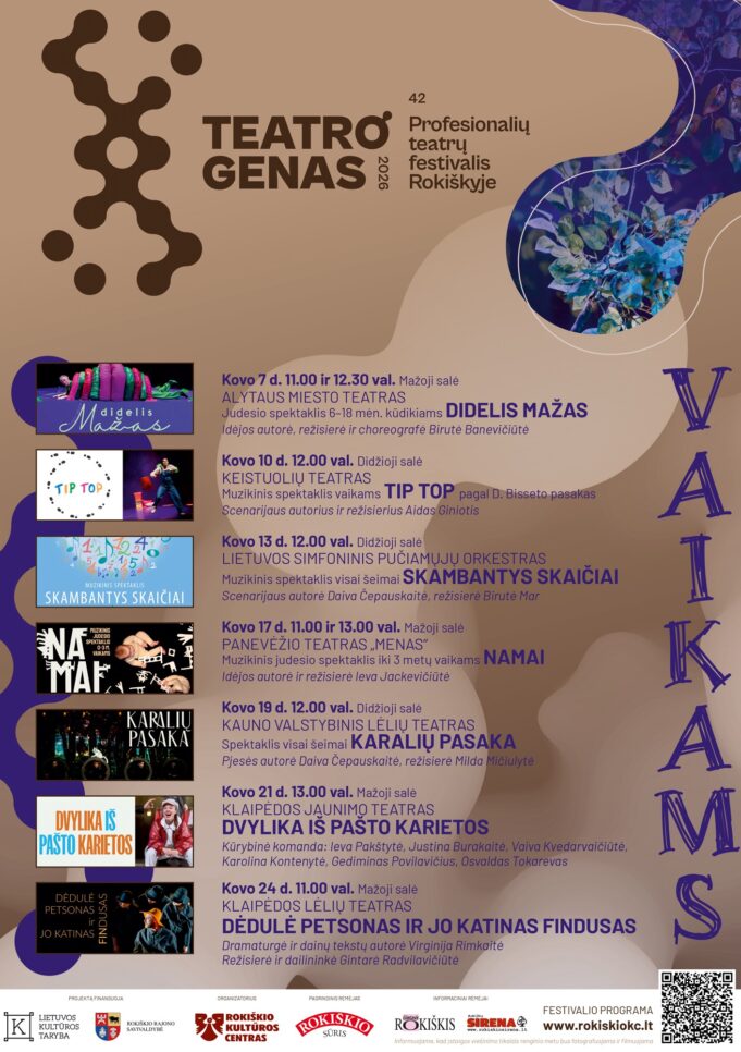 Projektą „42-asis profesionalių teatrų festivalis Rokiškyje TEATRO GENAS“ finansuoja Lietuvos kultūros taryba ir Rokiškio rajono savivaldybė