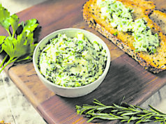 - Paruoškite česnako ir žolelių mišinį – su aliejumi sumaišykite smulkintus žalumynus, išspaustą česnaką, pagardinkite druska ir pipirais.
