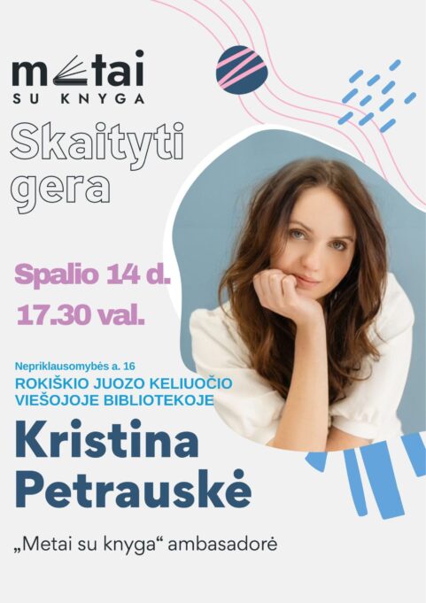 Spalio 14 d. 17.30 val. – susitikimas su projekto „Metai su knyga“ ambasadore, istorike, socialinėse medijose žinoma kaip Chistorikė, knygos „Slanimo raganos“ autore Kristina Petrauske.