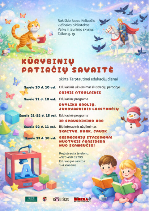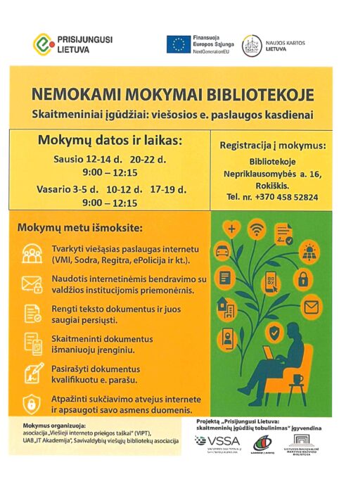 Sausio 20-22 d. 9-12.15 val. – Nemokami kompiuterinio raštingumo mokymai „Skaitmeniniai įgūdžiai: viešosios e. paslaugos kasdienai“. Registracija telefonu: +370 458 52824.