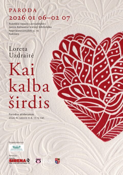01.06-02.07 – Loretos Uzdraitės paroda „Kai kalba širdis“, Rokiškio rajono savivaldybės Juozo Keliuočio viešojoje bibliotekoje. Parodų galerijoje „Autografas“.