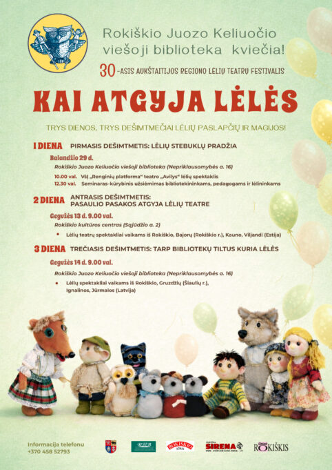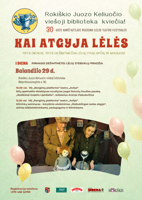 Balandžio 29 d. 10 val. – Jubiliejinis lėlių teatrų festivalis ,,Kai atgyja lėlės“, pirma diena. Rokiškio rajono savivaldybės Juozo Keliuočio viešojoje bibliotekoje.