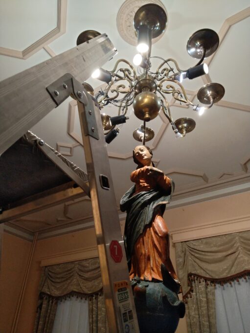 S. S.-Ž. – Pati pradinė idėja, dar Giedriaus Kujelio iškelta, buvo atsivežti Marijos Tizenhauzaitės-Pšezdzeckienės albumą, kuris yra suskaitmenintas, ir parodyti. Bet reikia konteksto. O kontekstas labai daugiašakis. Mes norėjom parodyti Marijos Nekaltai pradėtosios garbinimo raidą iki bulės atsiradimo, iki dogmos paskelbimo 1854 metais. Bent jau nuo XII–XIII amžiaus ji buvo Europoje plačiai garbinama. Kai kas ir nepavyko. Norėjome parodyti įspūdingą XVII amžiaus Nekaltojo Prasidėjimo brolijos bažnytinę vėliavą iš Vilniaus Bernardinų bažnyčios, bet dėl būklės atsisakyta ją čia atvežti.