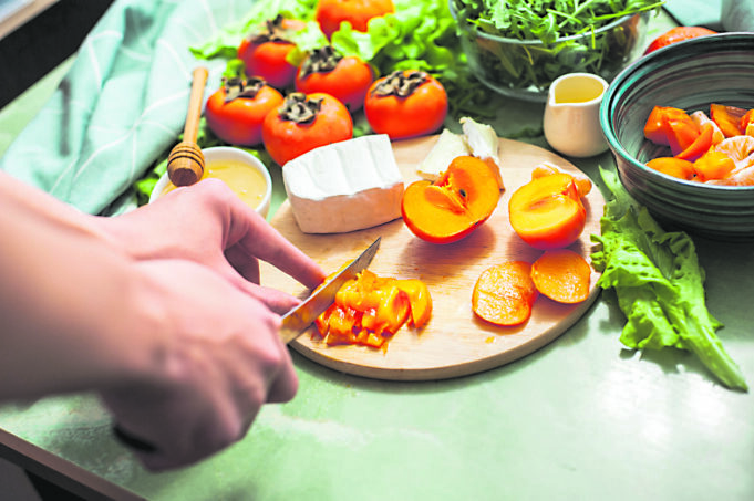 - Į dubenį sudėkite supjaustytus persimonus (jei norite – prieš tai nulupkite), supjaustytą avokadą, špinatus, atvėsintas bolivines balandas arba grikius, pabarstykite riešutais, tarkuotu sūriu ir užpilkite padažu. Išmaišykite ir mėgaukitės!