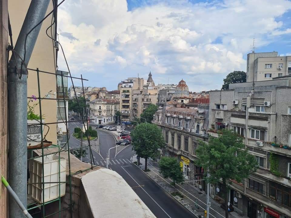 Šiandien važiavom į Bukareštą. Griaudžia, žaibuoja ir gera, žinom, kad lietuviai kaista. Miestas – vienas didelis kamštis. Iš pirmo žvilgsnio panašu į Belgradą, gal Kijevą, bet čia tik pirmas įspūdis. Ryt apžiūrėjom dar miegantį, kai nebuvo nė vieno žmogaus prie Parlamento rūmų penktą ryto. Tą patį rytą pirmą kartą užsieny!!! Rumunų policininkai nepagailėjo ir nubaudė – viršytas greitis kaime – leidžia septyniasdešimt, važiavom šimtą – visi taip, prieš miestelį net nepristabdo savo „dacijų“ ir „dusterių“. Bet lietuvius pasigavo būtinai su sirenom… Genujoj prieš porą metų buvo kur kas malonesni, o šitie atsiųs Lietuvon baudą. Igoris visai nesusinervino, tik aš išsigandau, kad „atims mašiną“ ir reikės tranzuot. Lietuvoj niekas seniai to nedaro, o čia – kiekvienam kaime. Bebaimiai. Dar jie visu kaimu sėdi ant suolelių prieš kelią tarp savo beglobių šunų, aklinų tvorų ir rožių – toks visą kelią nesibaigiantis balaganas. Galima įsimylėt šalį… Ai, dar butas ketvirtam aukšte pačiam sostinės centre. Nuotraukos iš balkono, kitoj gatvės pusėj bobutė rūko pypkę ir vis pamojuoja… Bukarešto centras.