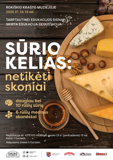 Sausio 24 d. 14 val. Tarptautinės edukacijos dienai skirta edukacija-degustacija SŪRIO KELIAS: NETIKĖTI SKONIAI. Registracija tel. +370 615 44586 iki sausio 23 d.