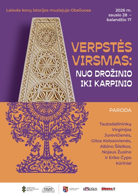 Tautodailininkų Virginijos Jurevičienės, Gitos Kolosovienės, Albino Šileikos, Nojaus Žusino ir Eriko Čypo kūrinių paroda VERPSTĖS VIRSMAS: NUO DROŽINIO IKI KARPINIO