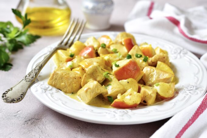 Reikės: 650 g šviežios viščiukų broilerių krūtinėlės filė, 2 obuolių, 60 g džiovintų spanguolių, 60 ml medaus, 1 šaukštelio cinamono, aliejaus, 1 šaukšto sviesto, druskos, pipirų, 3 šaukštų miltų.