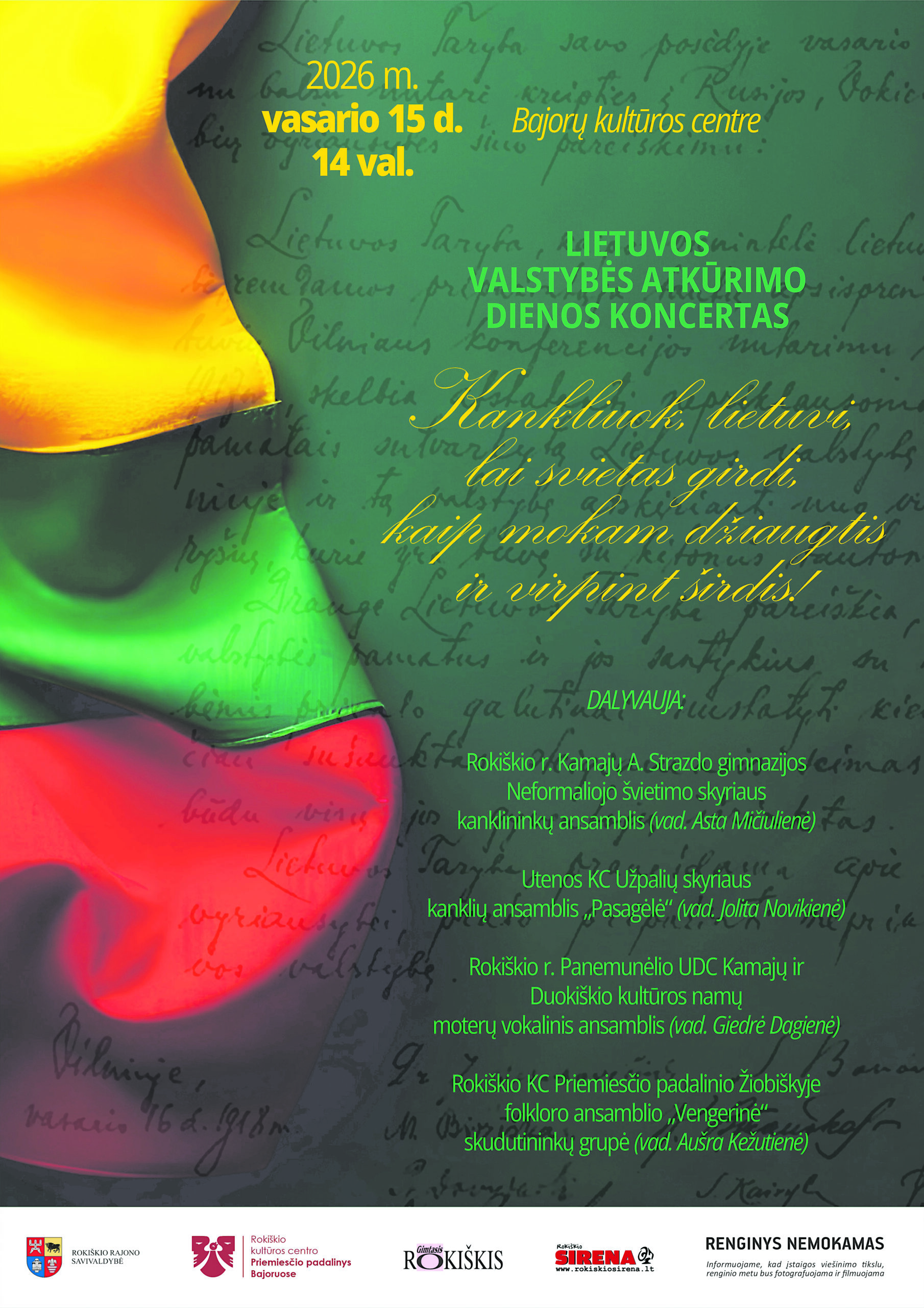 14.00 val. Koncertas „Kankliuok, lietuvi, lai svietas girdi, kaip mokam džiaugtis ir virpint širdis“ Bajorų kultūros centre