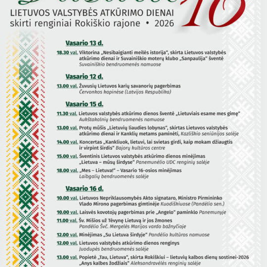 LIETUVOS VALSTYBĖS ATKŪRIMO DIENAI skirti renginiai Rokiškyje