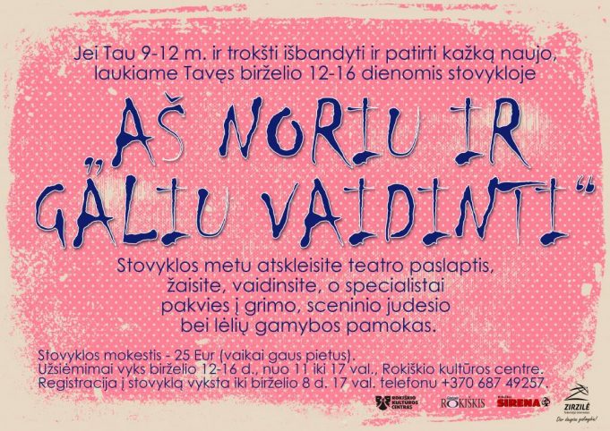 Jei Tau 9-12 m. ir trokšti išbandyti ir patirti kažką naujo, laukiame Tavęs birželio 12-16 dienomis stovykloje „AŠ NORIU IR GALIU VAIDINTI“