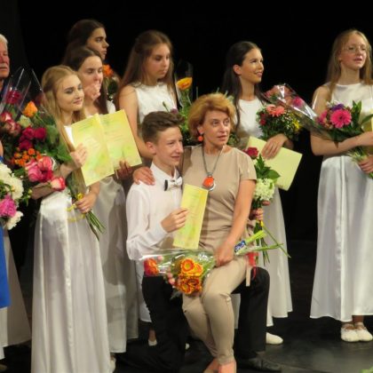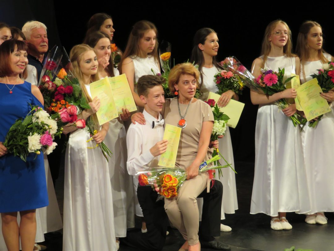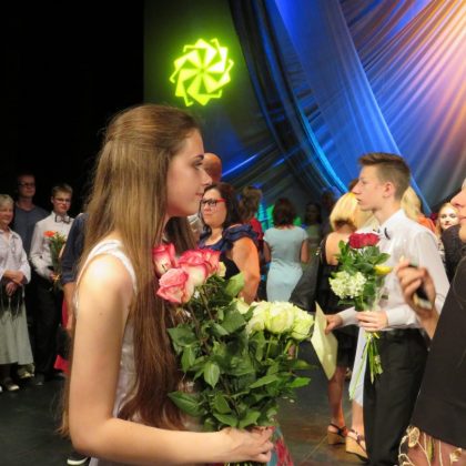 Nuaidėjus paskutiniams šokių akordams, į sceną pakviesti mokytojai, baigiamąjį pasirodymą padėję rengti koncertmeisteriai ir muzikos instrumento mokytojai.