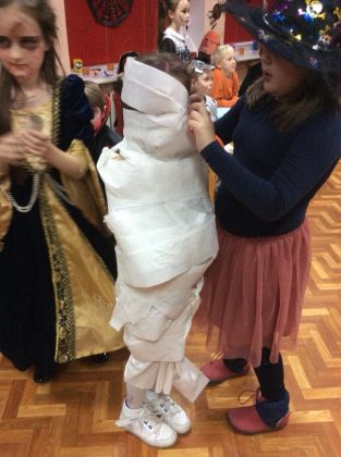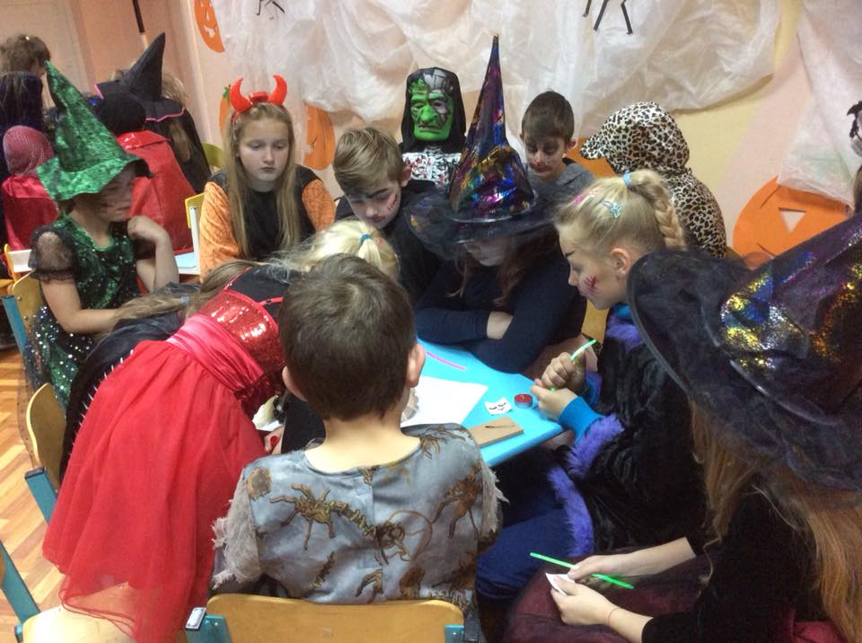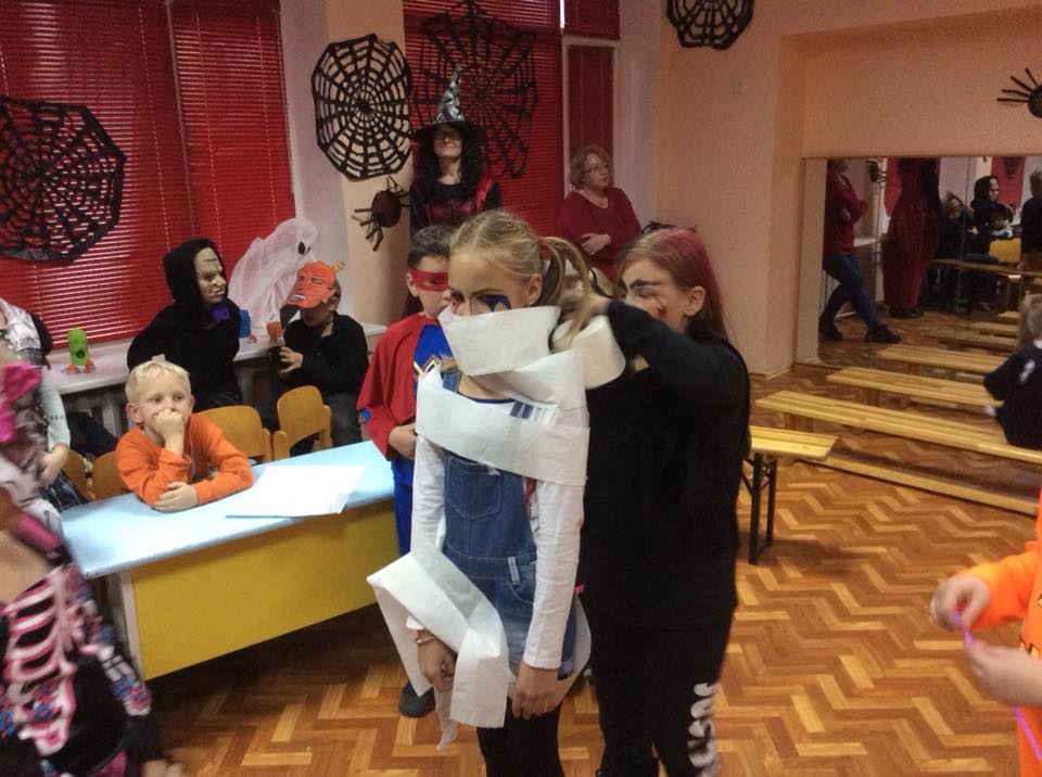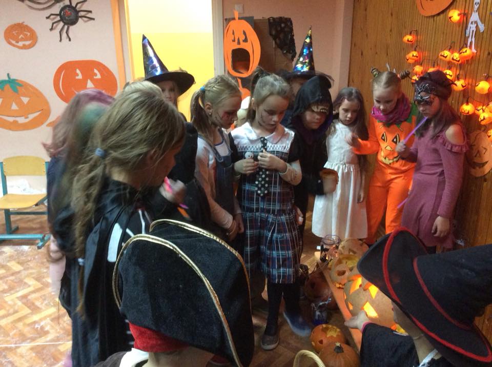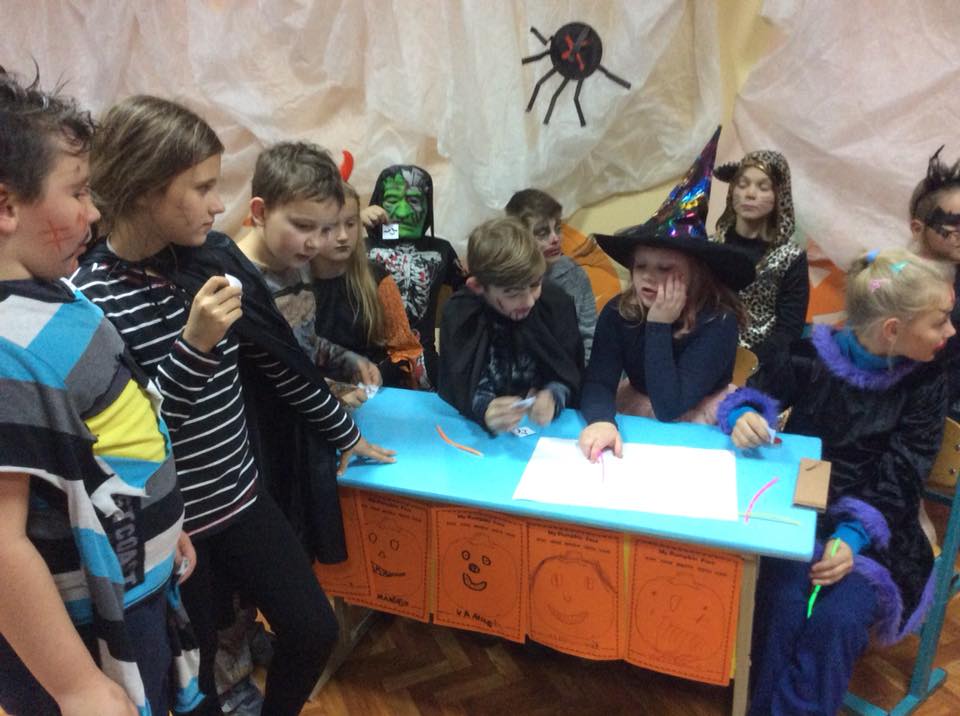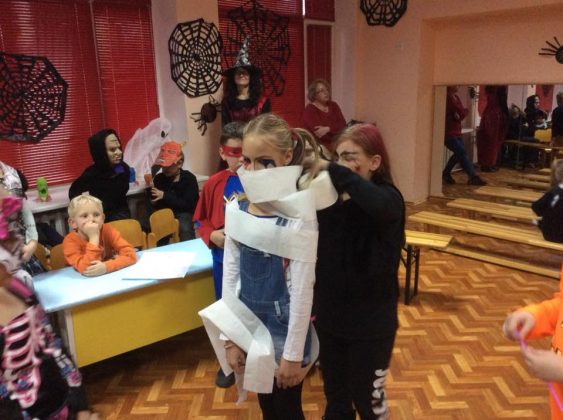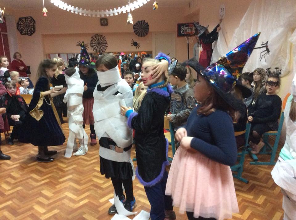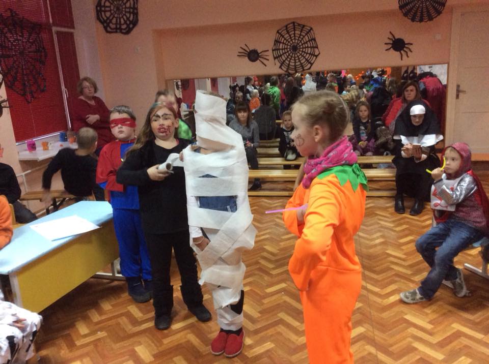 Susibūrė šikšnosparnių, juodų kačių, vaiduoklių ir skeletų komandos – klausėsi angliškų dainų, rungtyniavo linksmoje estafetėje su miltų lėkšte ant galvos, formavo mumiją, šoko ir smagiai leido laiką. Apdovanoti vaikai, kurie į šventę atsinešė išskaptuotų moliūgų ar žibintų. Įteiktos padėkos ir saldūs prizai Kavoliškio mokyklos-darželio, Pandėlio pradinės mokyklos ir Rokiškio Senamiesčio progimnazijos komandoms.