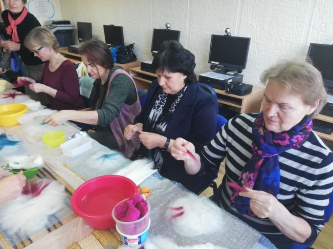 Netikėtai užsimezgusi draugystė su mokytojomis, tautodailininkėmis ir vilnos vėlėjomis Jūrate Deksniene ir Miglanda Aleksiejiene paskatino ieškoti įvairių temų susitikimams ir bendrai veiklai bibliotekoje. Po veltų darbų parodos J. Keliuočio viešosios bibliotekos miesto filiale sulaukta didžiulio susidomėjimo. Per 15 entuziasčių susibūrė į bendraminčių būrelį ir, padedamos tautodailininkių, ėmėsi naujos veiklos. Pora valandų kruopštaus darbo davė gražų rezultatą – kiekviena išsinešė savo rankomis „išglostytą“ angeliuką. Kitame susitikime „skleidėsi“ veltos pavasariškos gėlės–sagės ir džiugino moteris lengvumu, spalvomis bei savitumu.