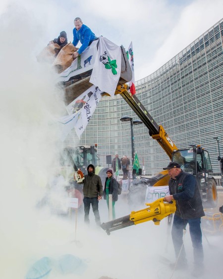 Sausio 23 d. Belgijos sostinėje Briuselyje – nematytas reginys: pusantro šimto ūkininkų, protestuodami prieš intervencinių pieno miltų pardavimą rinkoje, šalia Europos Sąjungos (ES) Tarybos pastato išpylė apie 5 t traktoriais atsivežtų pieno miltų. Juos atgabeno belgų ūkininkai.