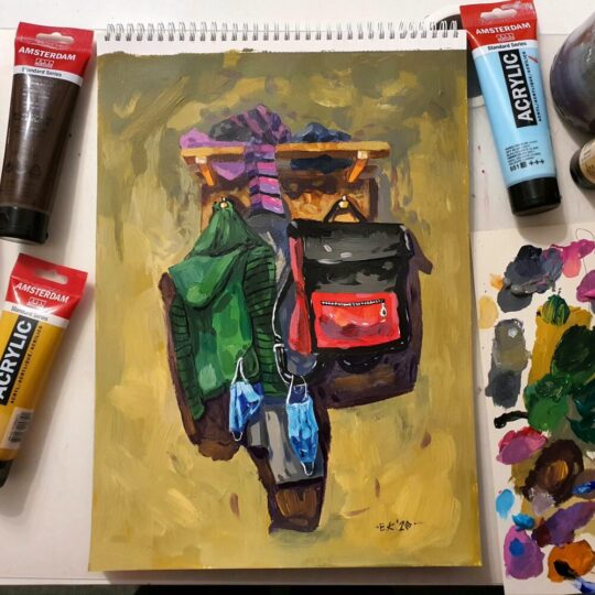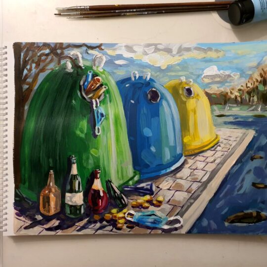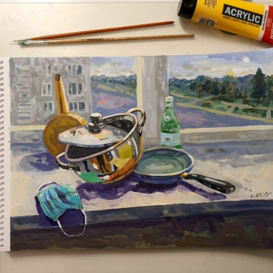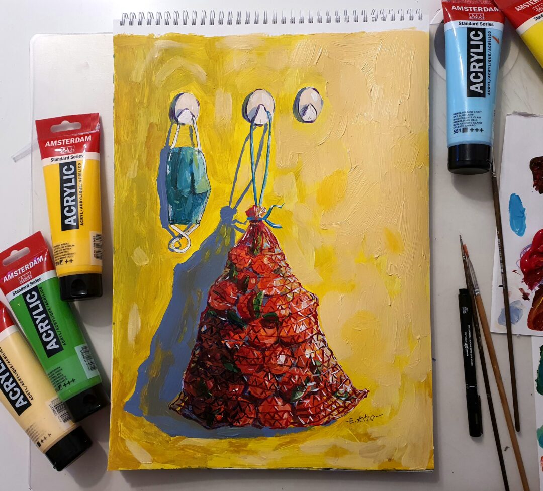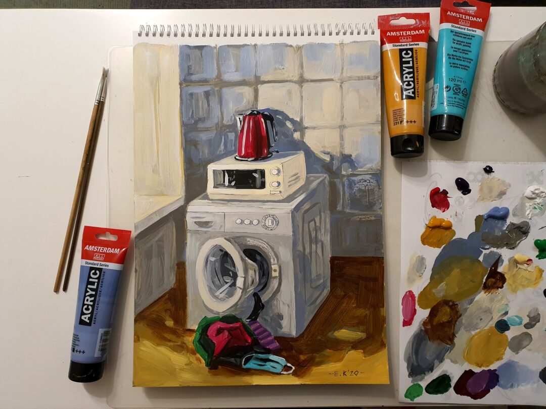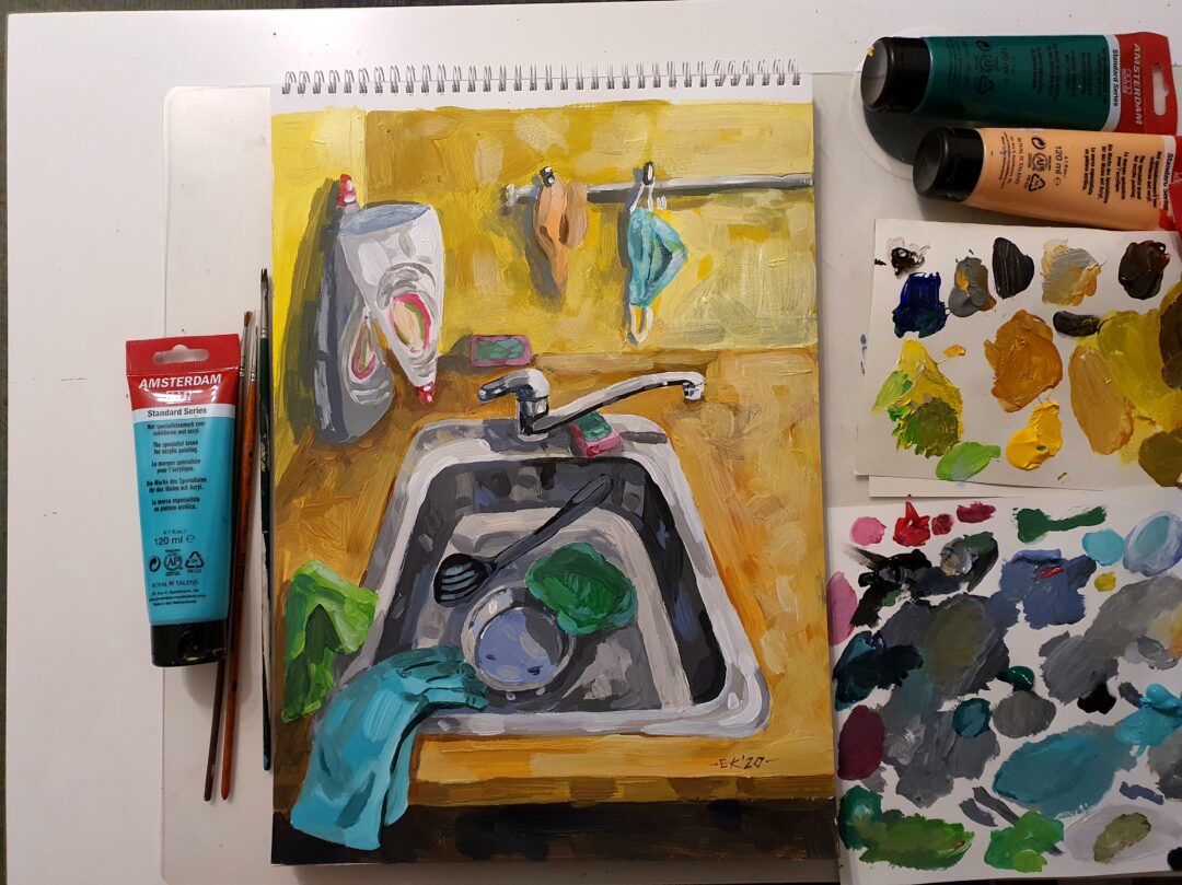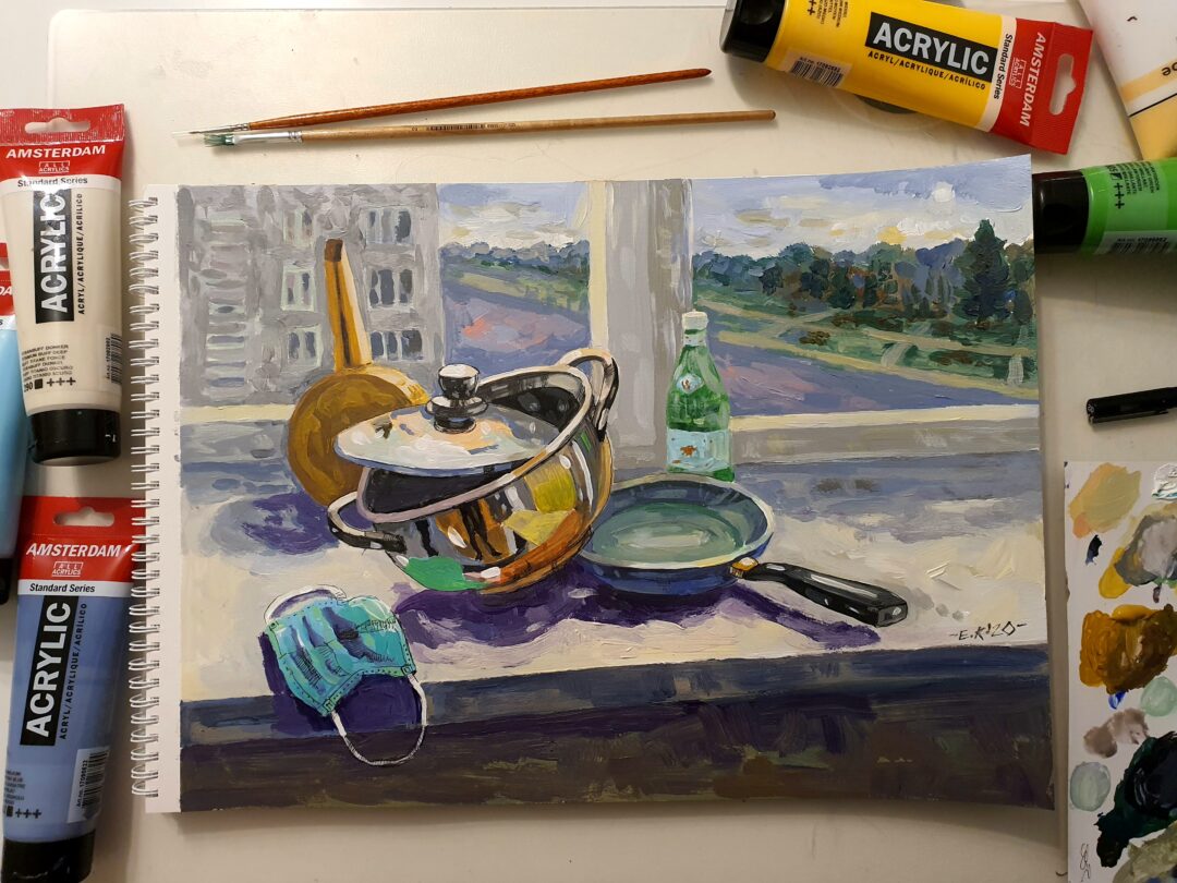 „Daug laiko praleisdama namie stebėjau savo buitį ir aplinką. Lapkričio vidury kilo mintis, kad kiekvieną dieną galiu įamžinti meno kūrinyje, taip išreikšdama savo emocijas, mintis. Atlikau darbų ciklą „Savaitė“. Jame – 7 kūriniai. Fiksuojami įprasti buities fragmentai. Kasdienė nyki buitinė aplinka tampa pabrėžtinai svarbiomis meno scenomis. Žiūrovas kviečiamas kartu tyrinėti mano buities siužetus, ieškoti panašumų, skirtumų, kitaip pamatyti ir patirti kasdienybę“, – taip apie save sako dailininkė E. Kurlavičienė.