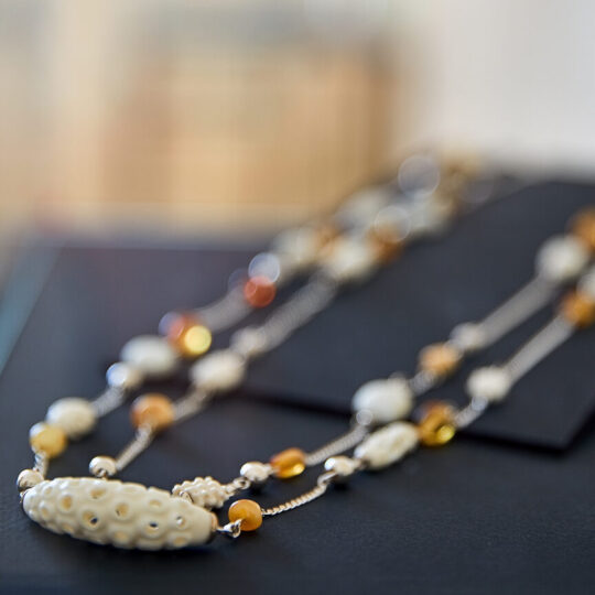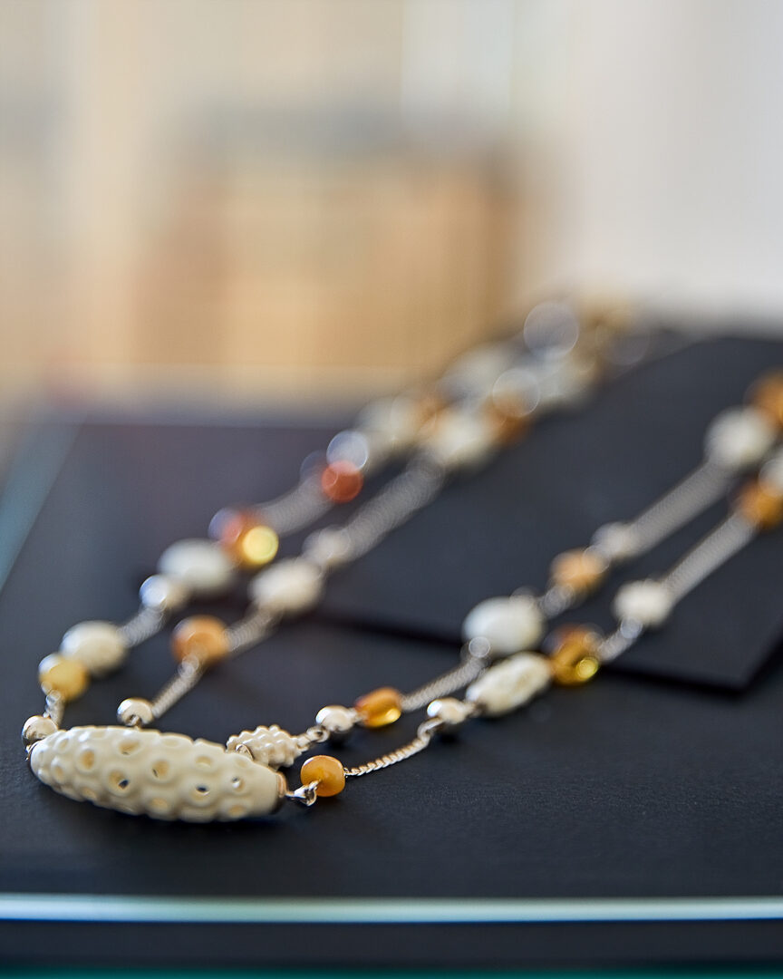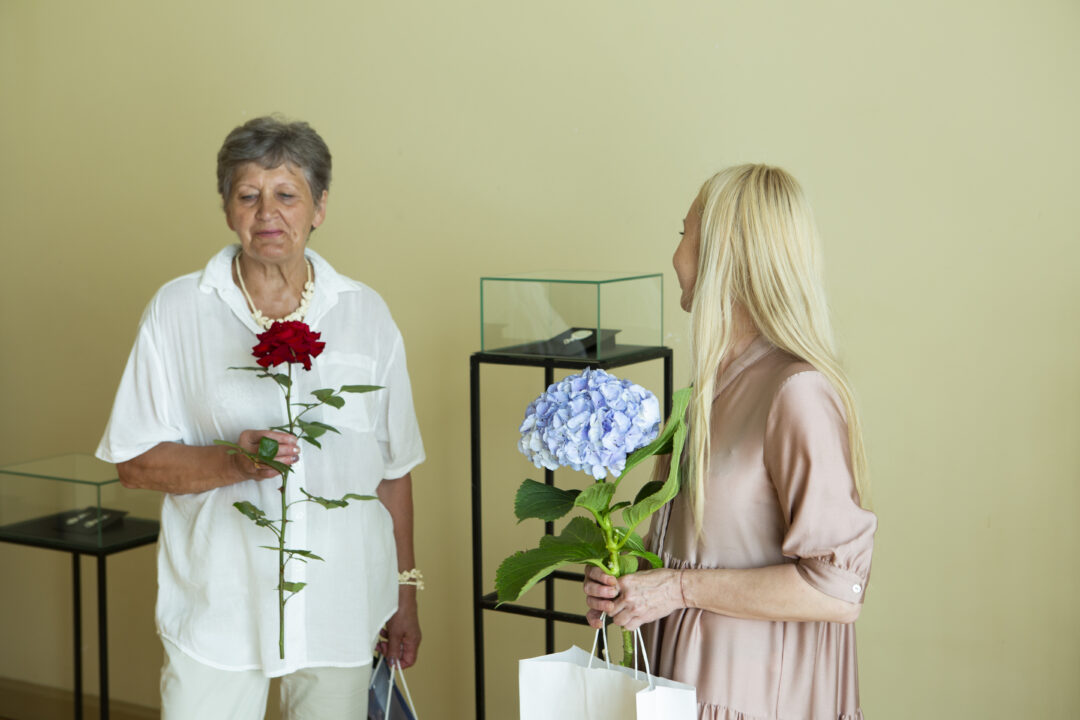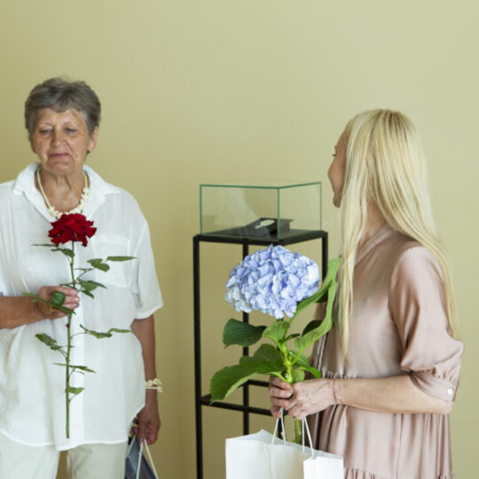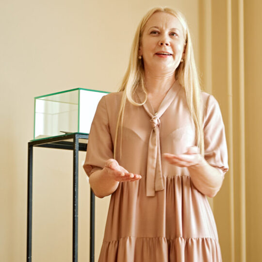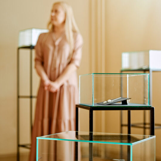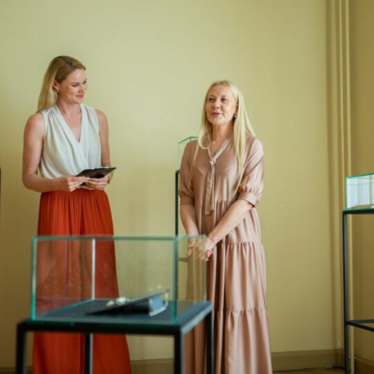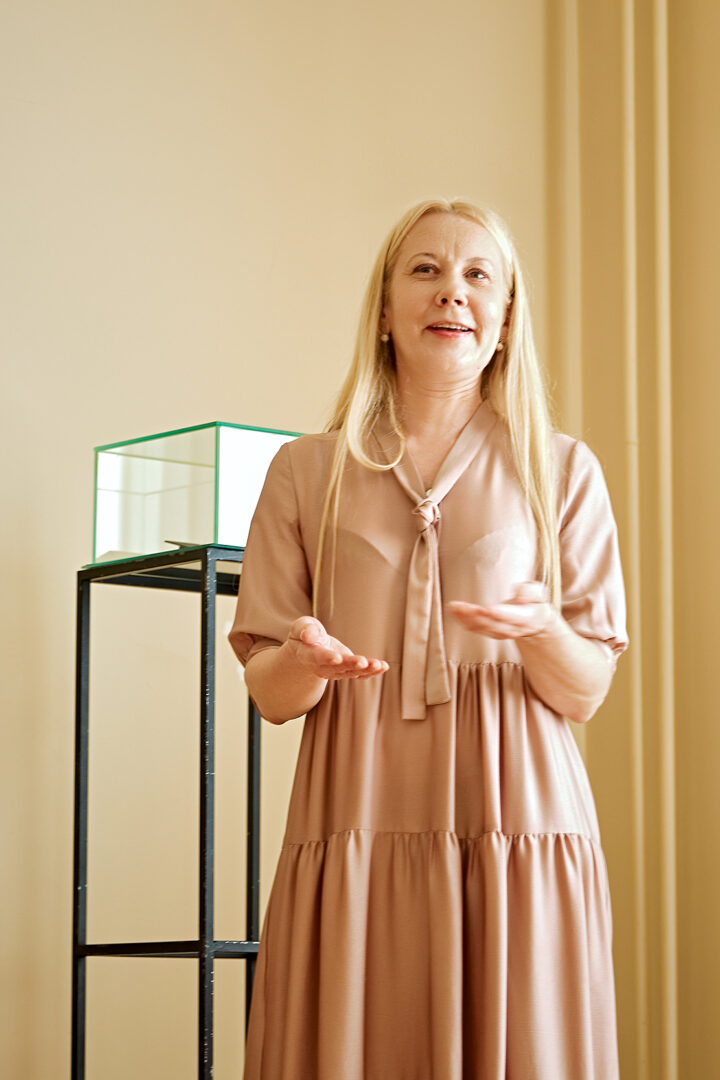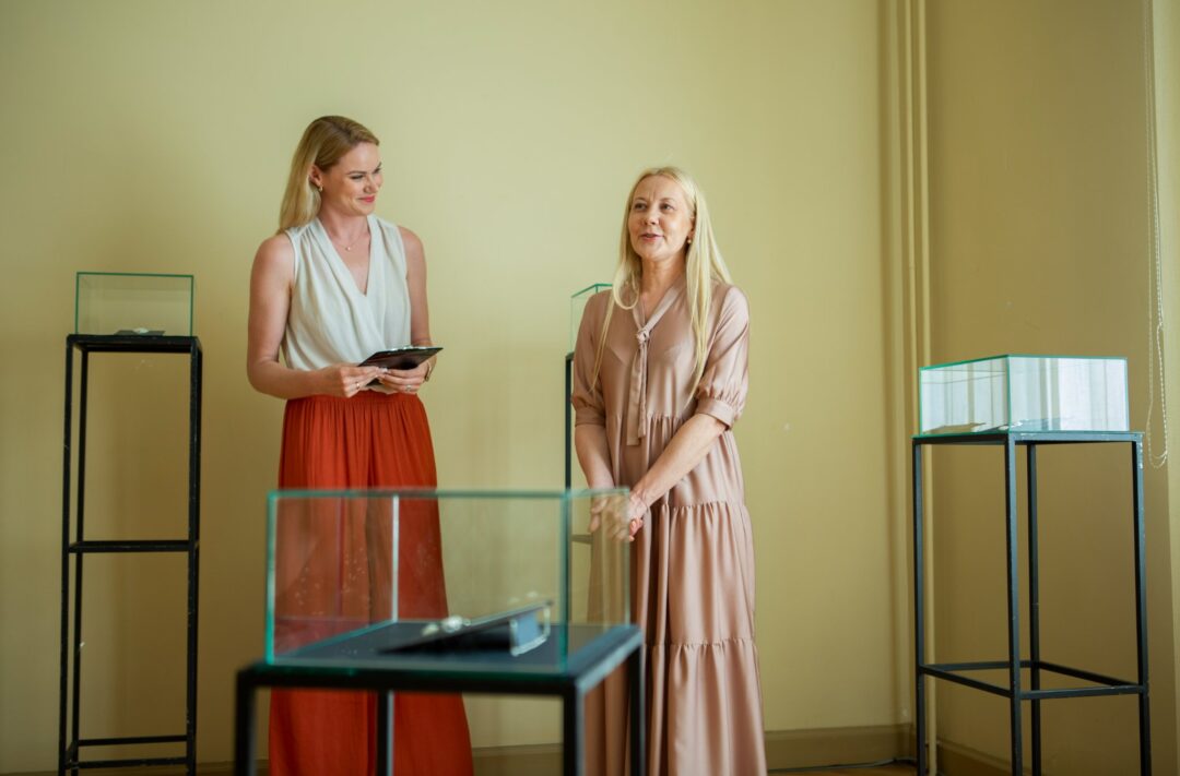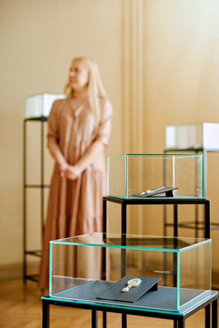 Kalbą Vaida pasirašė naktį prieš parodą, tačiau labai jaudinosi: „O jei aš čia jokia menininkė, jei žmonėms nepatiks?“ Taip skamba amžini perfekcionistės priekaištai sau. Nuo viešų prisistatymų Vaidą išgelbėjo Justė Jankauskaitė – „Rokiškio klasikinės muzikos festivalio“ žiūrovams kasmet padedanti atverti talentus. Ji visiems pacitavo papuošalų kūrėjos kalbą: „Pirmoji mano pažintis su stiklu, kaip su medžiaga, įvyko 2016-aisiais. Ta pažintis buvo netikėta, atsiradus galimybei sukurti ir padaryt vitražą. Stiklas mane sužavėjo nuo pat pirmojo rėžio rėžtuku. Tai labai jautri, reikli, įnoringa bei begalę galimybių turinti medžiaga. Pažintį su ja tęsiau stiklo lydymo technika. Pora metų buvo intensyvaus darbo, ieškojimų ir eksperimentų formomis ir spalvomis, oksidais ir emalėmis metas. Kūriau interjero dekoro elementus, indus, objektus. Tačiau man, kaip moteriai, aktualiausia ir įdomiausia buvo stiklo papuošalų darymas. Iš pradžių juos kūriau vien iš stiklo, vėliau tapo labai smalsu, kaip stiklas vizualiai sąveikauja su kitomis medžiagomis, tokiomis, kaip sidabras, kaulas, gintaras ar perlai. Kurdama supratau, kad ar tai būtų viena, ar kelios stiklo detalės – tai suteikia papuošalui gylio, šarmo ir gyvybės.“ Rokiškio moterims ir vyrams Vaida iki šiol labiau buvo žinoma kaip išskirtinių rankinių kūrėja.