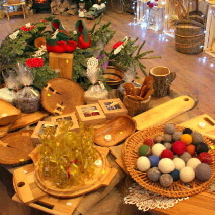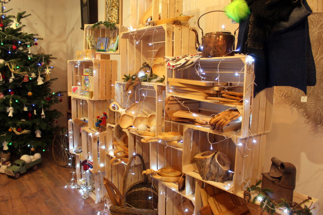 Jaukiai papuoštoje Tautodailės galerijoje (Nepriklausomybės a. 8) veikia rajono tautodailininkų mugė. Čia kasdien iki sausio galite įsigyti originalių rankų darbo kalėdinių dovanų. Nenorite pirkti? Tautodailininkai jus kviečia užeiti pasigrožėti originalia puošyba, išgerti arbatos. O pirkti yra ką – žaisliukas eglei, gausybė virtuvei skirtų įrankių iš medžio, molio, vilnos, paveikslai, riešinės, pirštinės, nuostabaus grožio šilko skaros, papuošalai, kiti rankdarbiai. Vyksta edukacijos, kuriose meistrai moko velti vilną, karpyti, rišti sodus, pakuoti dovanas. Prie įėjimo po baltomis kolonomis kaip ženklas, kad čia kvepia šventėmis, išpuoštos kalėdinės rogės.