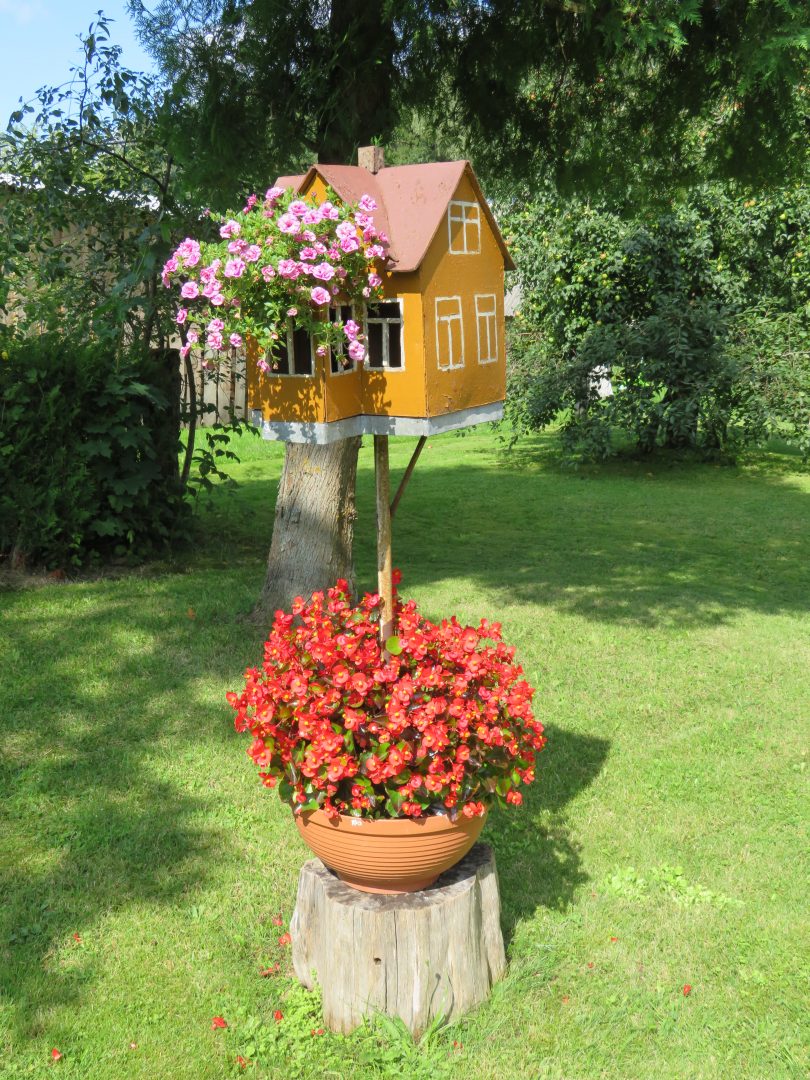 Daug kartų esame girdėję posakį: „Originalumas slypi paprastume.“ Žiobiškyje gyvenančios Nijolės Spietinienės kieme akį traukia neįprasta puošmena – iš miniatiūrinio namelio svyranti žydinti gėlė. Pasirodo, tai gyvenamojo namo kopija, kurią kadaise sukonstravo jos vyras. „O gėlė tam, kad nebūtų liūdna ir nuobodu“, – samprotavo kiemą svyrančiomis begonijomis išpuošusi šeimininkė.