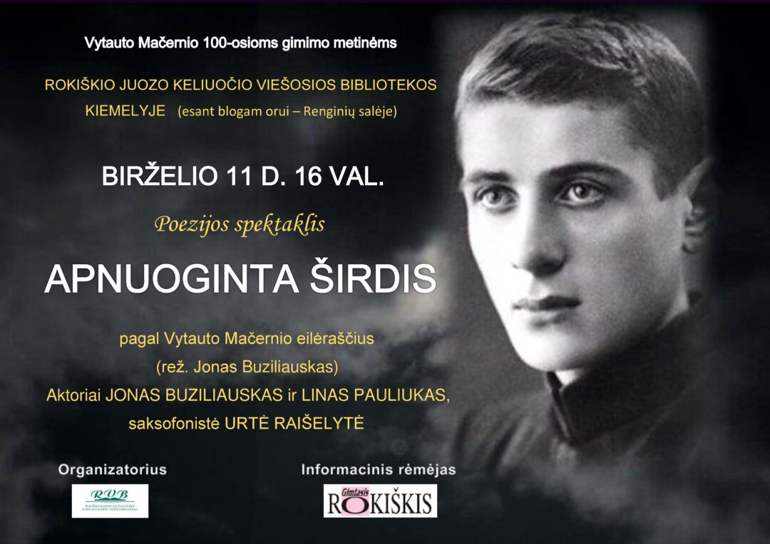 Kodėl rinkosi V. Mačernį, nors poetas kilęs iš Žemaitijos, Šarnelės? Režisierius sakė, jog „Linui patinka Mačernis“, be to, norisi spektaklius įprasminti, kad būtų savotiškas antras planas – šiuo atveju, kaip ir P. Širvio, šimtmetis.