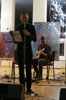 Tiesa, tą pačią valandą Rokiškyje vyko dar keli ne mažiau įdomūs renginiai, todėl žiūrovų į Kultūros centro antrojo aukšto fojė, kur vyko nemokamas renginys, susirinko vos kelios eilės. Nepaisant to, kad buvo proga išgirsti ir vieną originaliausių šiuolaikinių poetų, ir gyvo garso muzikantus – pavyzdžiui, puikiai šio meno mylėtojams žinomą Domantą Razauską.