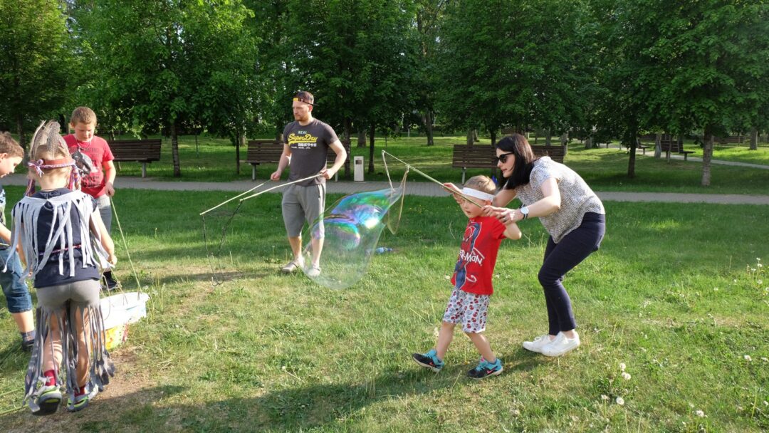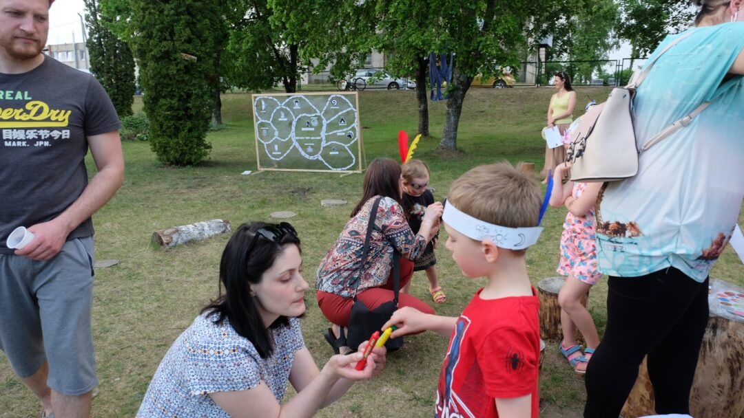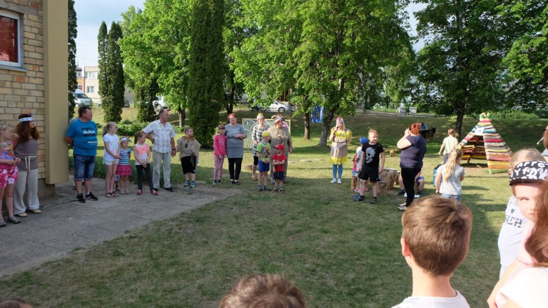 Šiais metais šventę „nuspalvinome“ indėniškais motyvais. Pirmiausia vaikus supažindinome su indėnų kultūra, papročiais. Nes jaunoji karta apie tai mažokai turi žinių. Šiai šventei buvo ruoštasi iš anksto ir su tėvelių pagalba mokyklos-darželio kieme pastatyta stilizuota indėniška palapinė. Dalyviams buvo parengtos „indėniškos“ užduotys-stotelės, kuriose kiekvienas galėjo rasti įdomias veiklas. Visos šeimos gavo kelionės žemėlapį su pažymėtais stotelių simboliais. Dalyviai pasivadino indėniškais vardais, atkreipdami dėmesį į savo bruožus, pasiekimus. Vaikai kartu su tėveliais gaminosi stilizuotus indėniškus papuošalus, puošėsi plunksnomis ir ornamentais galvos apdangalus. Pagal indėnų papročius, kiekviena plunksna yra pelnoma už kokį nors žygdarbį. Renginyje mamytės pynė mergaitėms kasytes, piešė dalyviams ant veidų. Vaikams tai suteikė daug džiaugsmo. Vėliau visi išbandė taiklumą stotelėse „Erelio akis“ – šaudydami iš lanko, „Taiklioji ranka“ – mesdami strėlytes į taikinį, „Lokio kirtis“ – sviesdami pagalius į statinį. Įdomu buvo išbandyti ir stotelę „Didžioji pėda“. Dalyviai turėjo pereiti kliūčių ruožą su didžiulėmis pėdomis. Smagi edukacija šeimų laukė stotelėje „Svajonių burbulai“, kiekvienas galėjo išbandyti ir paleisti didžiulius bei spalvotus muilo burbulus. Patys mažiausieji mėtė spalvotus kamuoliukus, o kai kurie atsigaivino braidydami po vandens baseinėlį.