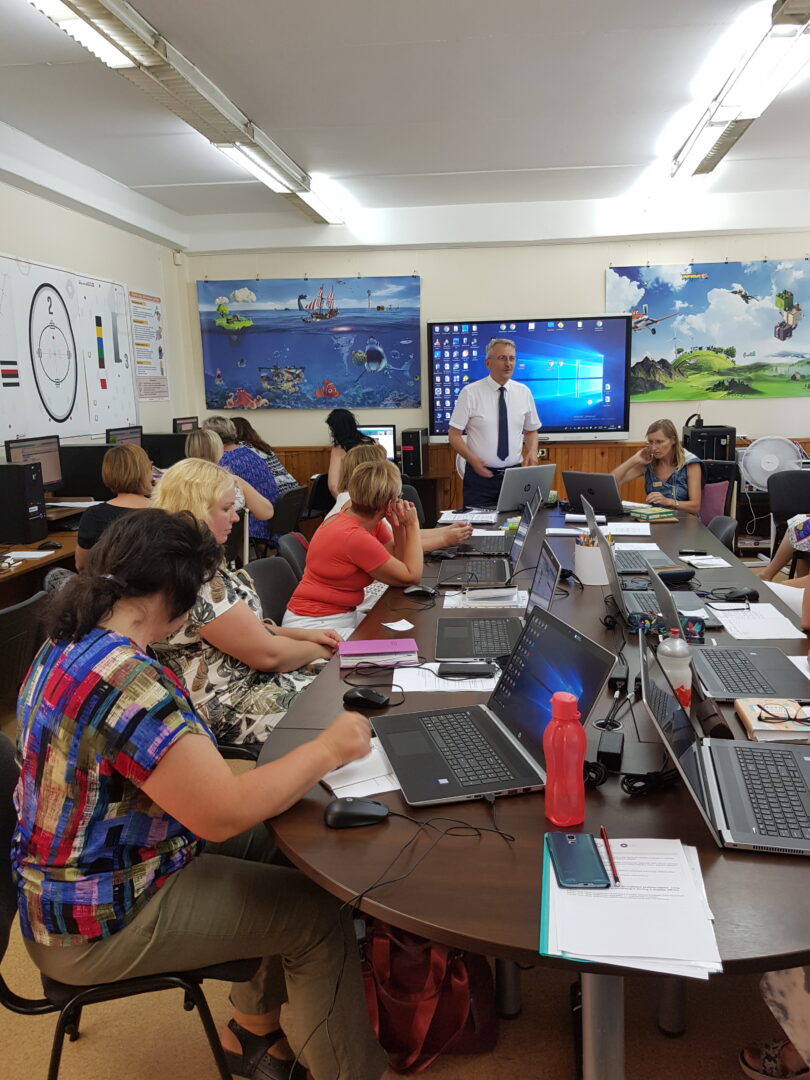 Progimnazijos direktorius Zenonas Pošiūnas pristatė mokyklos strategiją, veiklas IT srityse. Lektorės Vilma Krasauskaitė, Erika Kvaselytė ir Olia Samėnienė dvi dienas mokė regiono mokytojus ir palinkėjo rudenį pritaikyti įgytas žinias savo darbe.