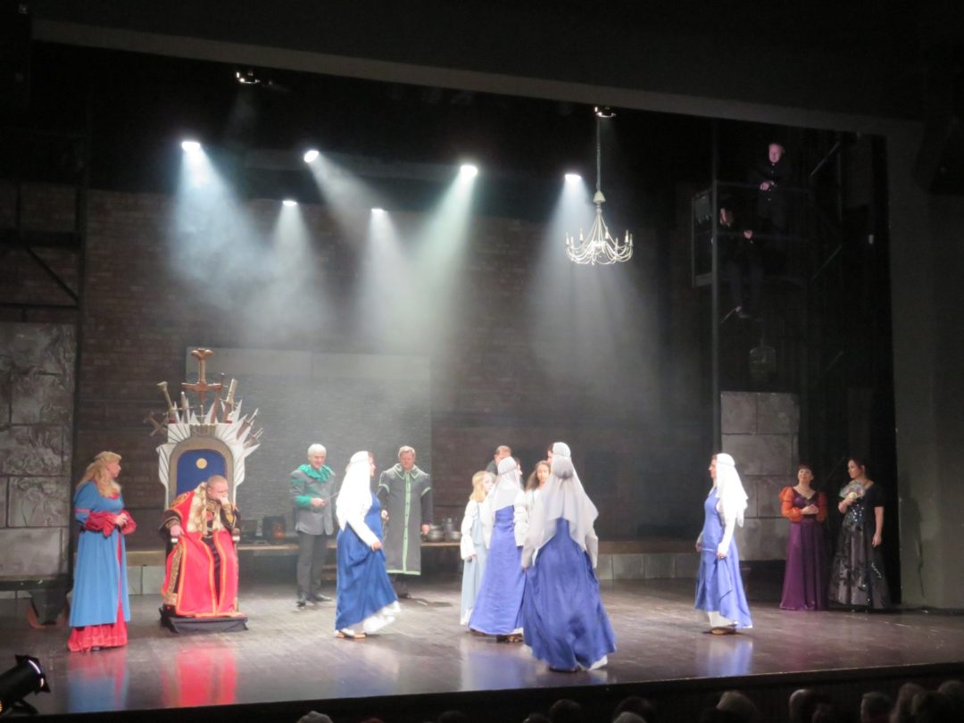 Pilnoje žiūrovų Kultūros centro salėje liaudies teatras parodė Algirdo Landsbergio stebuklinę pjesę „Gluosniai vėjuje“. Prieš spektaklį į sceną įžengęs režisierius Eligijus Daugnora priminė pirmąjį ir kitus reikšmingus, jubiliejinius teatro spektaklius, kuriuos režisavo Vytautas Vajega, Jonas Kavoliūnas, Linas Volodka, Jonas Korenka, Jonas Buziliauskas ir kiti kūrėjai.