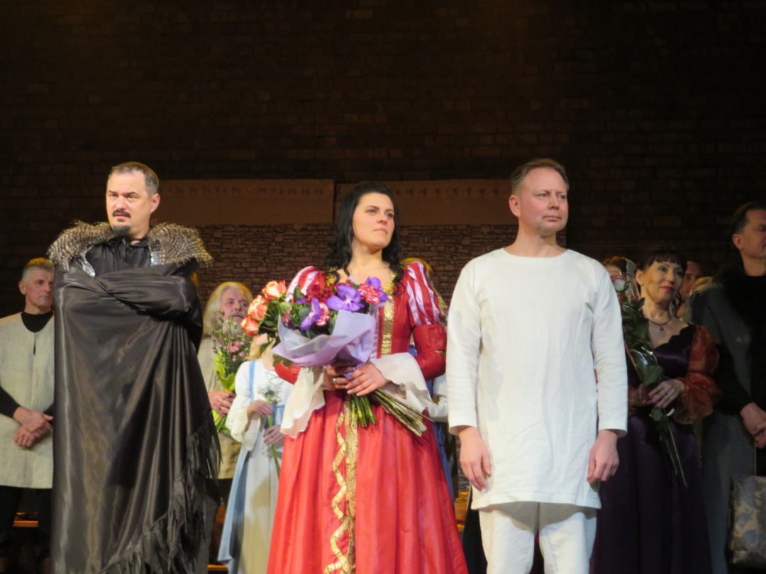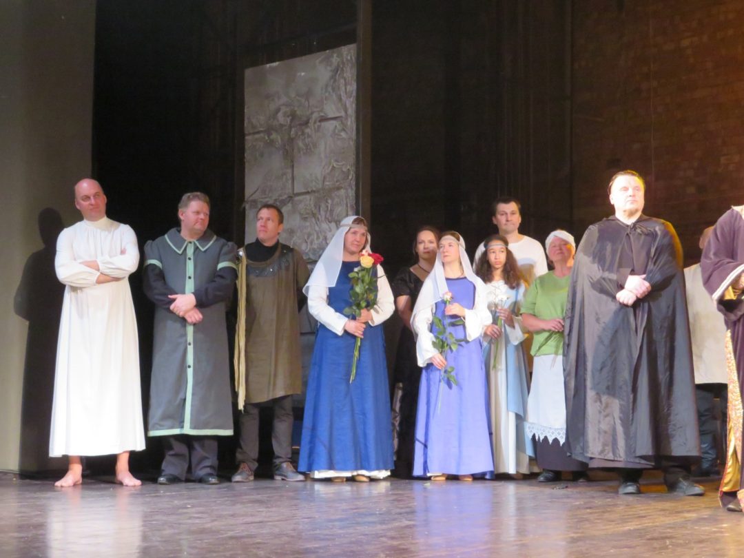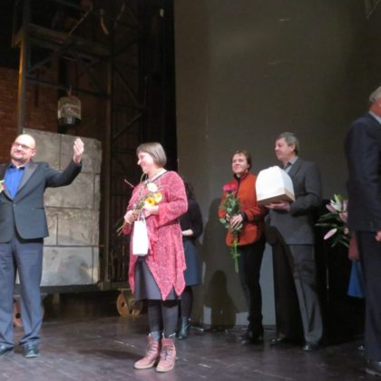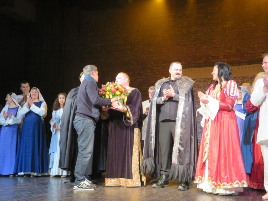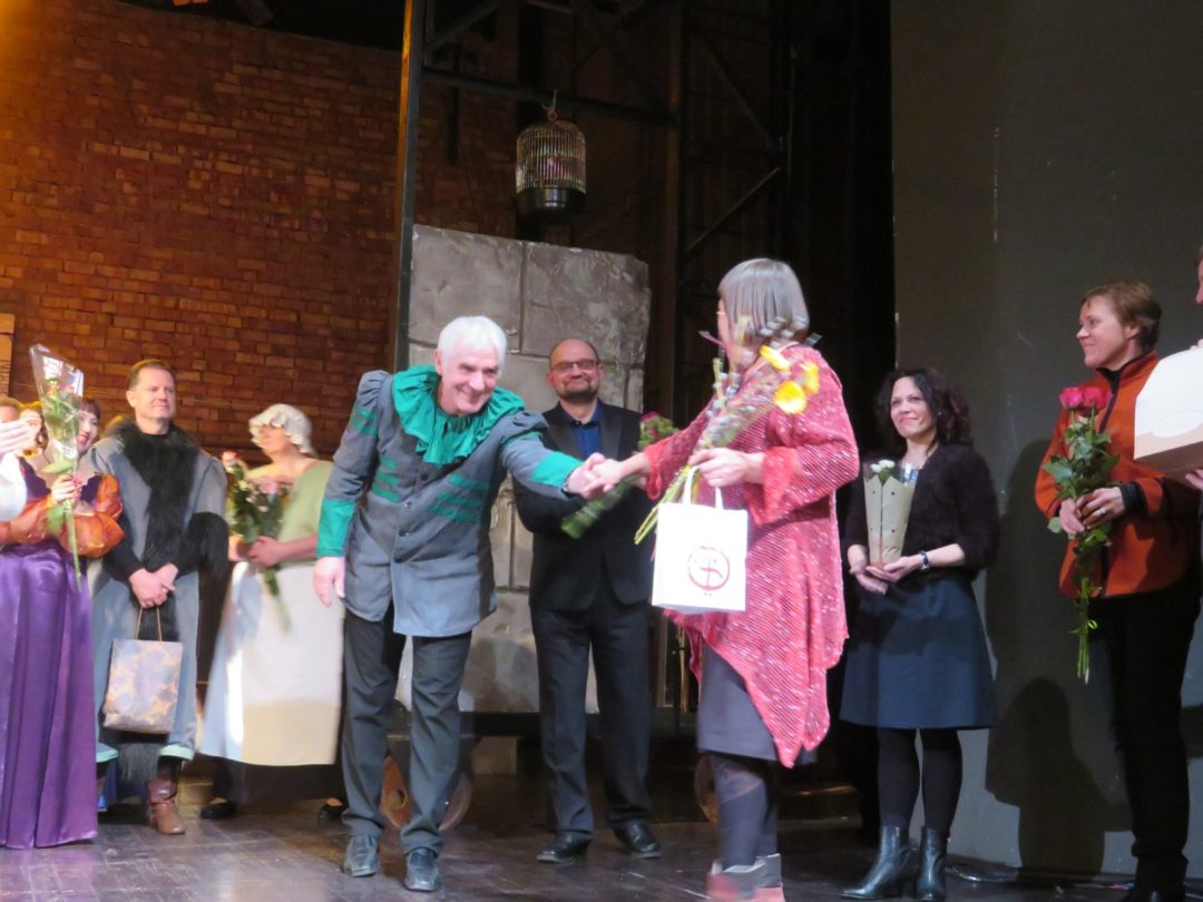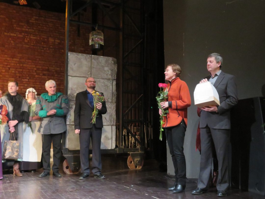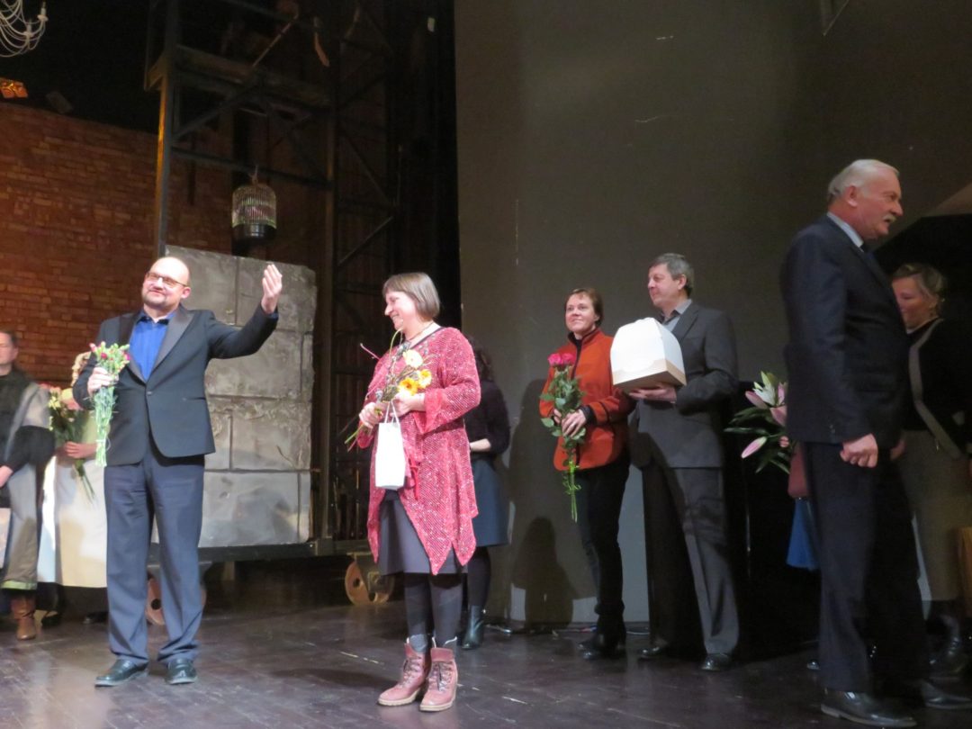 Pasibaigus spektakliui, liaudies teatro kolektyvą sveikino rokiškėnai bei Lietuvos mėgėjų teatrų sąjungos prezidentė Vita Vadoklytė.
