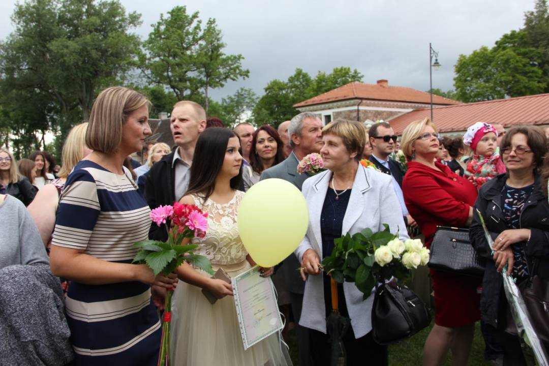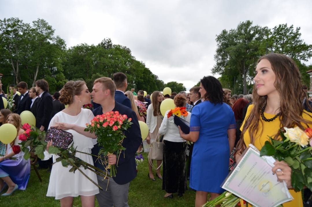 Pasveikinti sėkmingai išlaikiusiųjų egzaminus ateina tėveliai, seneliai, giminaičiai, draugai. Pirmiausia pagerbiami patys geriausieji – mokiniai, kurių egzaminai įvertinti šimtukais.