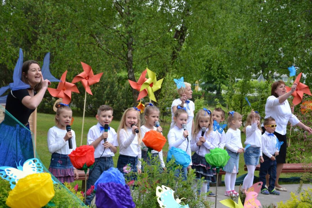Rokiškio “Varpelio„ lopšelio-darželio baigiamoji mokslo metų šventė – popietė „Atskubėti vaivorykštės tiltu į spalvų pasaulį…“ Joje po mėlynu dangumi krykštavo nerūpestinga vaikystė, šypsojosi saulutė, skambėjo dar negirdėta daina, suposi gėlytės, lijo šiltas lietutis, ropojo vabaliukai, zvimbė bitutės, skrajojo drugiai, svirpė žiogai… Popietė skirta bendruomenės metams paminėti.