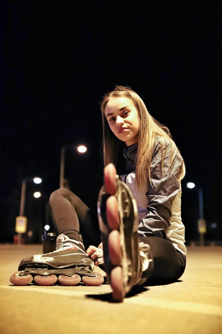 – Ar neturėjai traumų ir skaudžių kritimų? Kaip dažnai važinėji riedučiais?