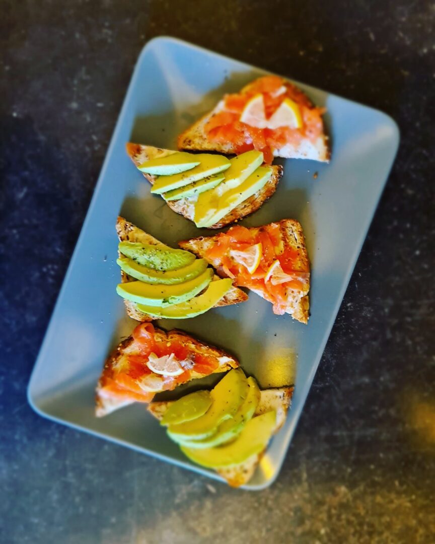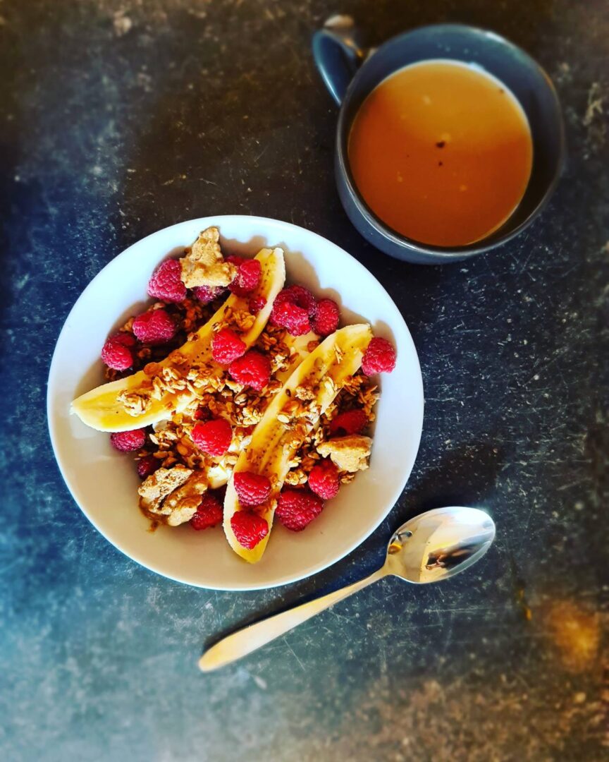 - Mėgstami desertai – ant duonos plonai užteptas riešutų sviestas ir uogos ar vaisiai. Kepu sveikuoliškus pyragus, keksiukus, avižinius sausainius.