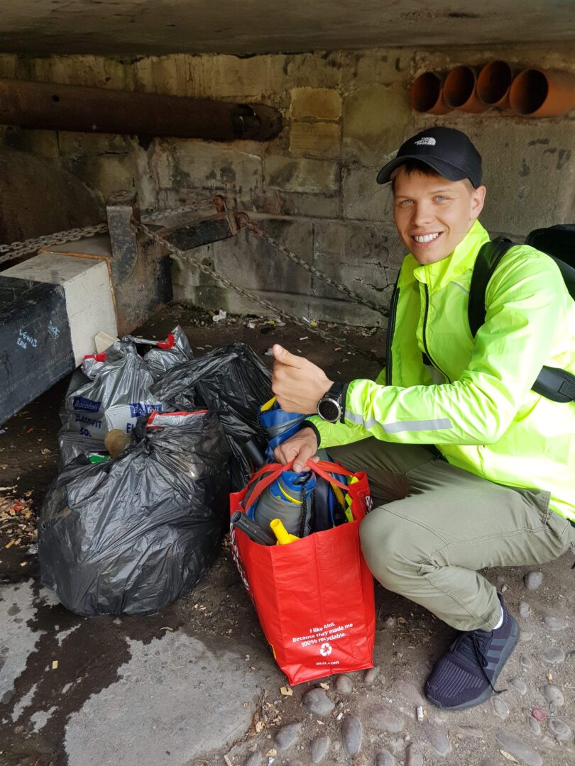 Išvalę kanalą, kaip įmanoma daugiau išrūšiavome atliekas, o kitas palikome prie šiukšliadėžių. Tik po švarinimosi akcijos sužinojome, kad galima paskambinti savivaldybės įstaigoms ir jos pasirūpina maišų surinkimu.