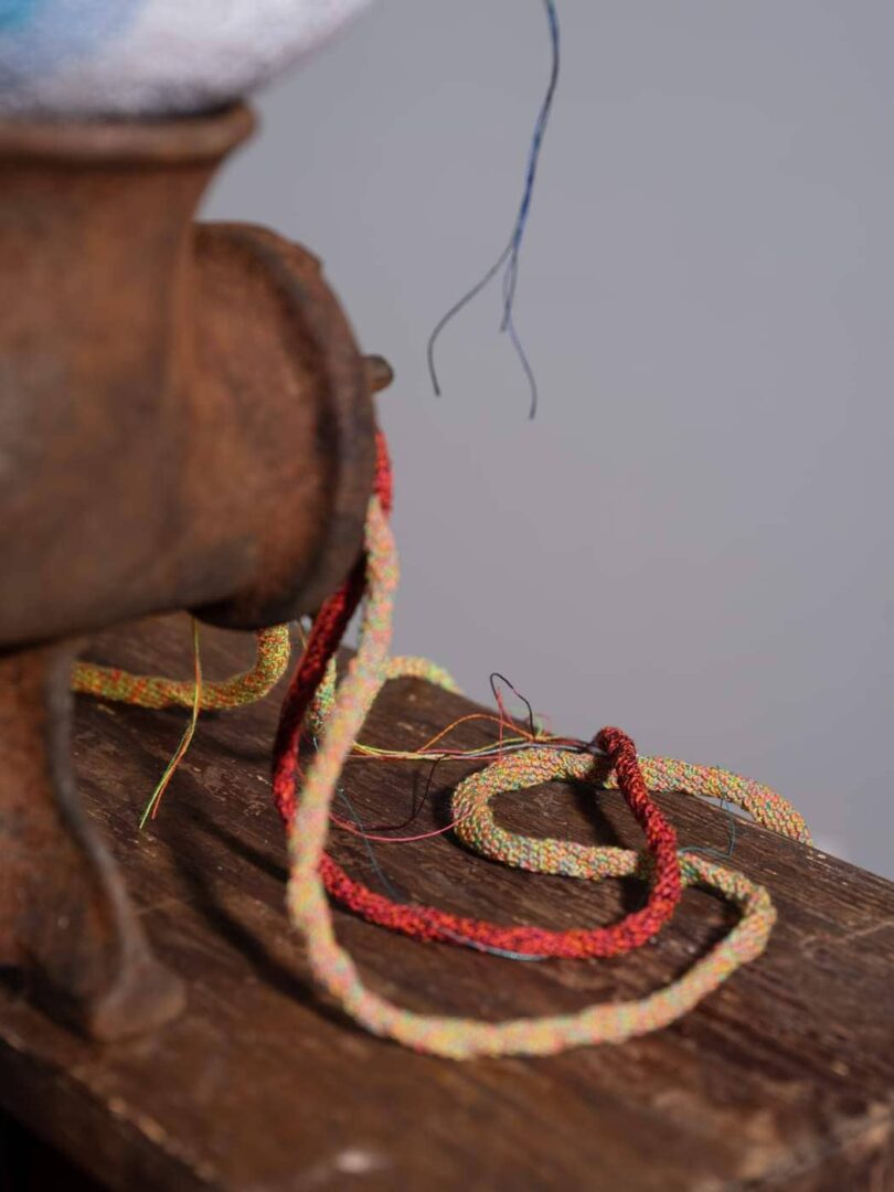 – Mano pasirinktos medžiagos rezonuoja su kvestionuojančia pozicija, kas mums yra papuošalas ir kokioje aplinkoje mes gyvename? Trumpai – egzistencialistinės medžiagos. Pastaraisiais metais papuošalus ir objektus kūriau iš pergamento, kurį pati išdirbu.