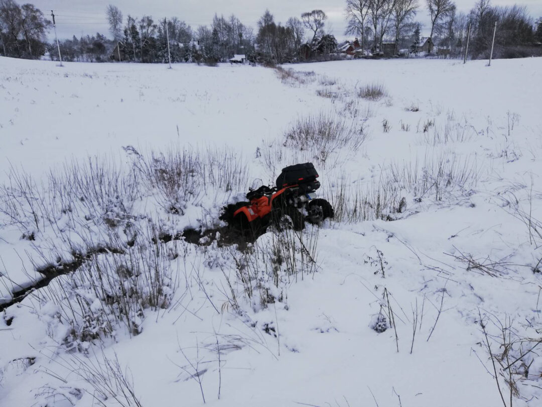 Iškritęs sniegas daugumai vairuotojų sukėlė įvairių problemų. Ne išimtis ir keturračių mėgėjai. Ne visada žiemos pramogos baigiasi gerai. Panašu, šiam keturračio vairuotojui prireiks rimtesnės pagalbos, kad išlaisvintų savo transporto priemonę…